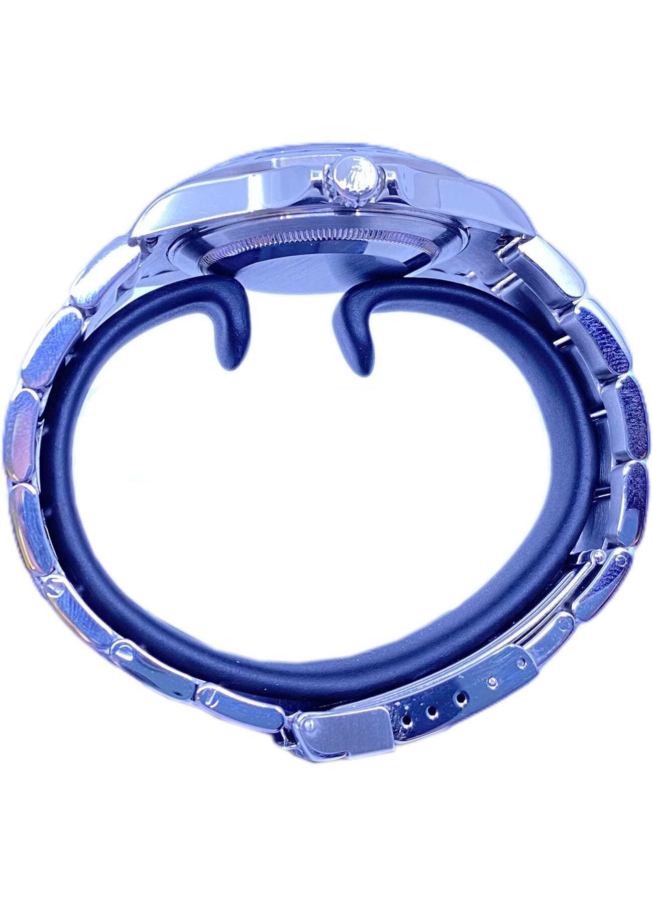 - This timepiece features a 40mm steel case paired with a high quality steel bracelet. It showcases a distinctive black dial and is powered by a precise automatic winding movement. The watch is designed with a water resistance of up to 100m.