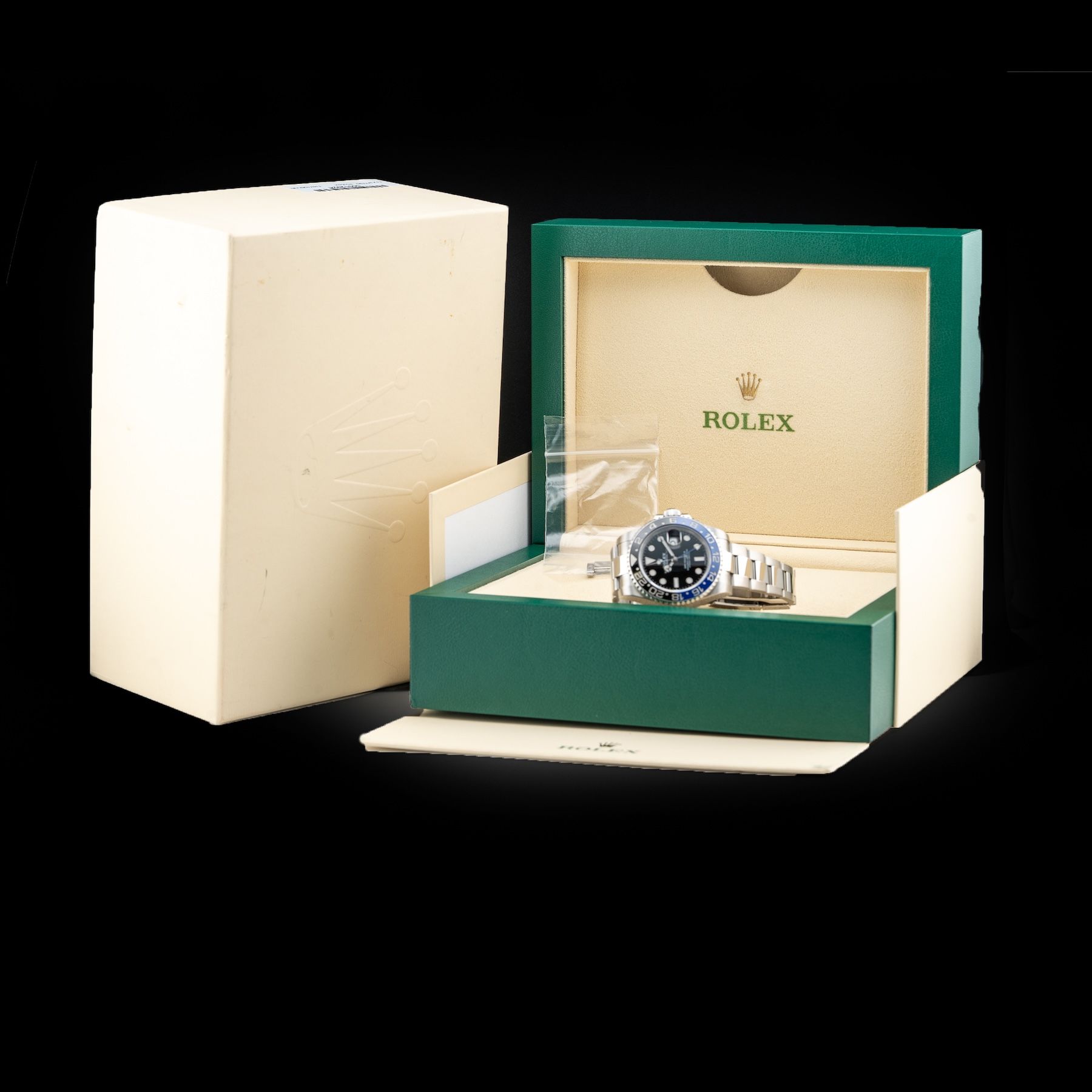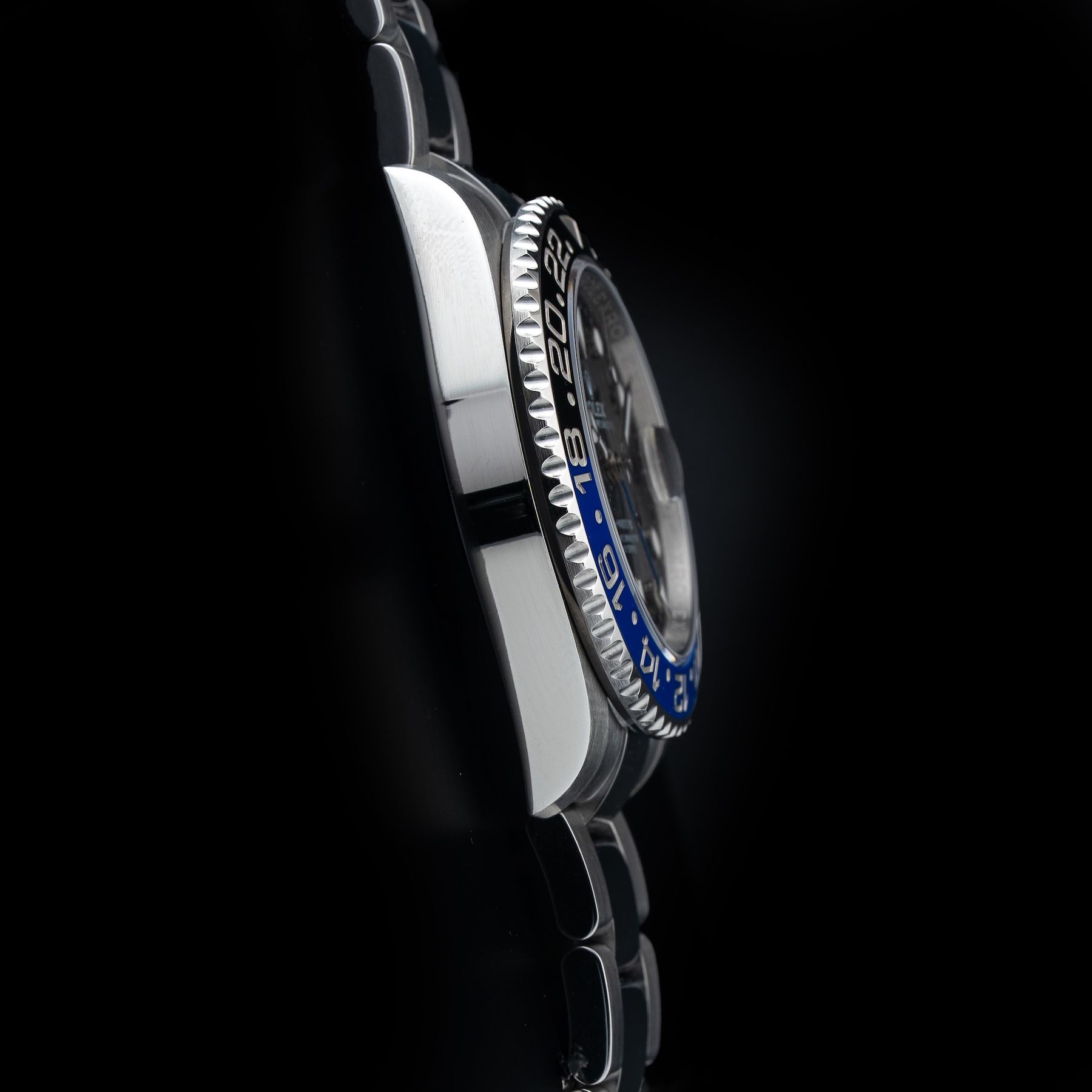 This Rolex GMT-Master II 116710BLNR is in GREAT condition. This watch includes Only its Original Box. This Rolex watch has been fully authenticated and certified by a 3rd party organization. You’ll receive the certificate of authenticity with your purchase. Please note, the photos shown are of the actual watch you will receive