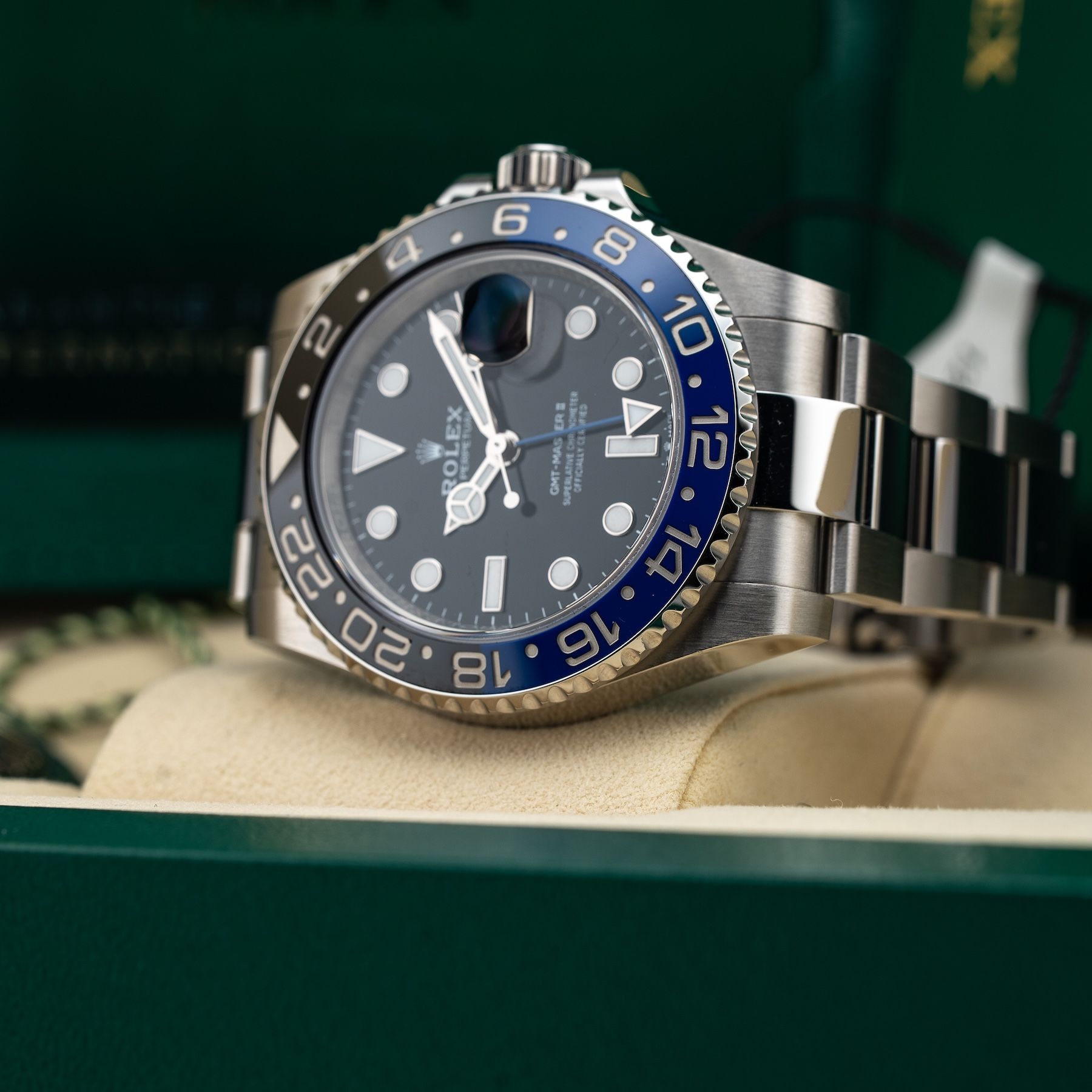 This Rolex GMT-Master II 126710BLNR is in GREAT condition. This watch includes its Original Box, Original Papers and Warranty Card Dated 10/25/24. This Rolex watch has been fully authenticated and certified by a 3rd party organization. You’ll receive the certificate of authenticity with your purchase. Please note, the photos shown are of the actual watch you will receive.