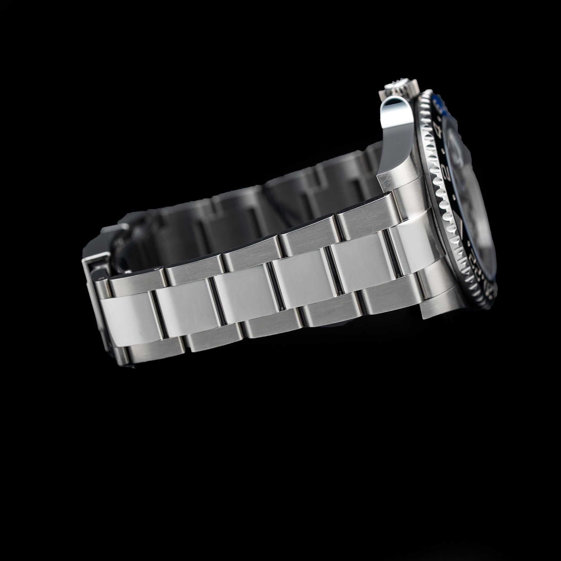 This watch features a 40mm oystersteel case on oystersteel bracelet. This watch also sports a black dial. Powered by a perpetual, mechanical, self-winding, GMT function movement. Water resistance up to 100 meters.