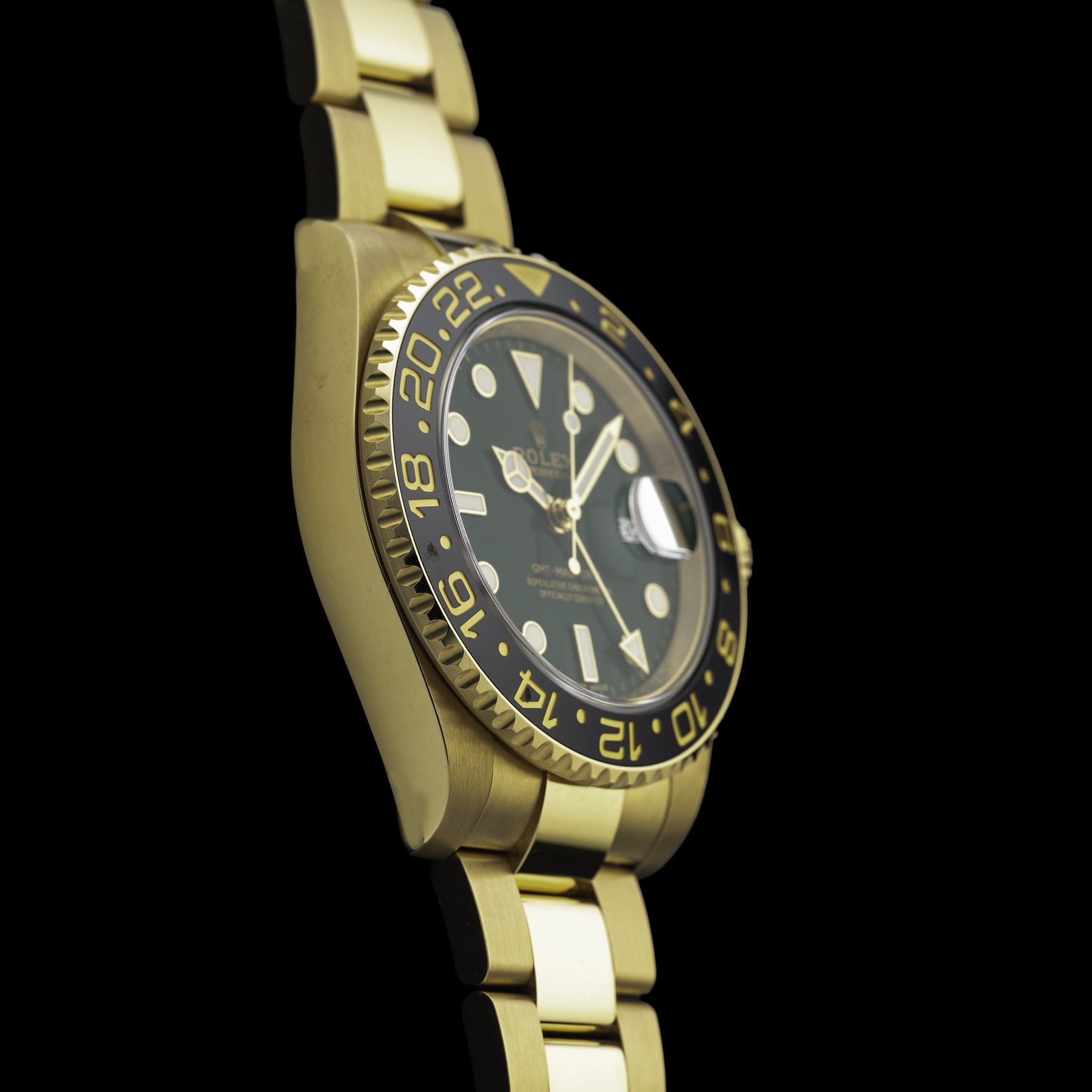 This watch features a 40mm yellow gold case on yellow gold bracelet. This watch also sports a green dial. Powered by an automatic movement. Water resistance up to 100 meters.
