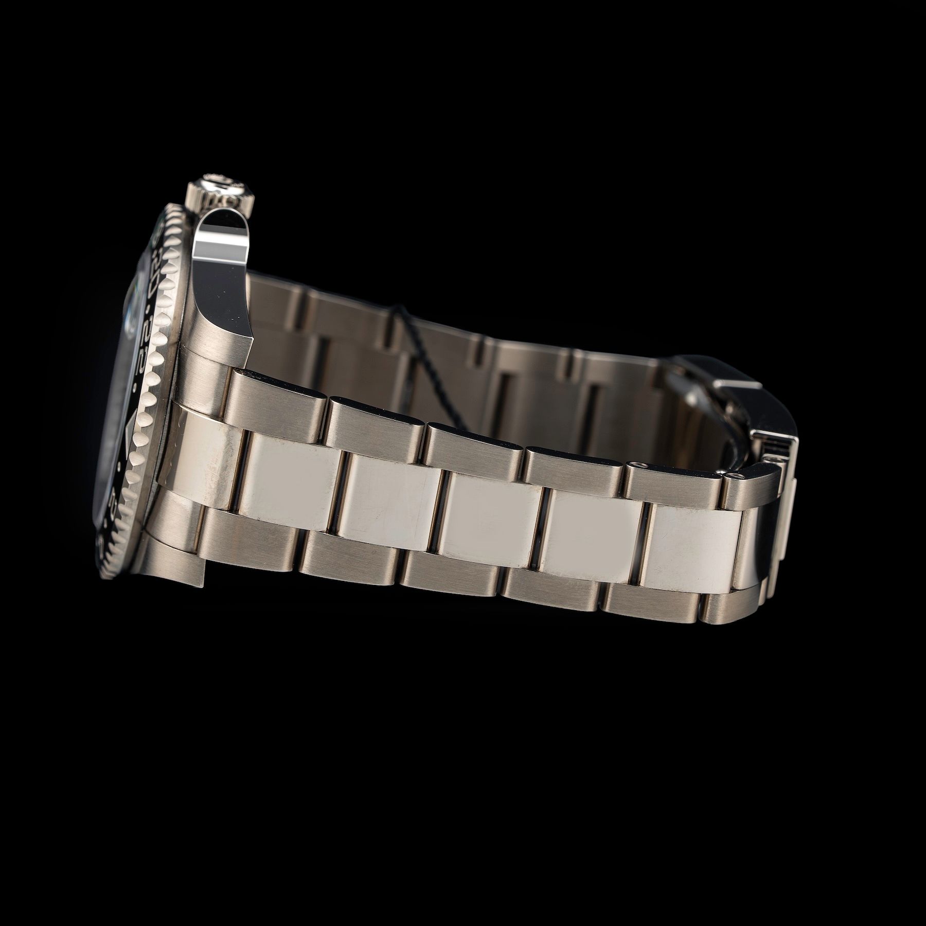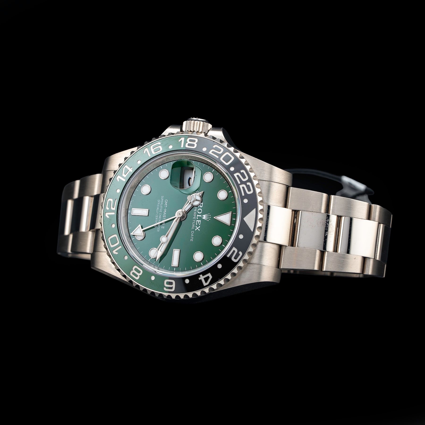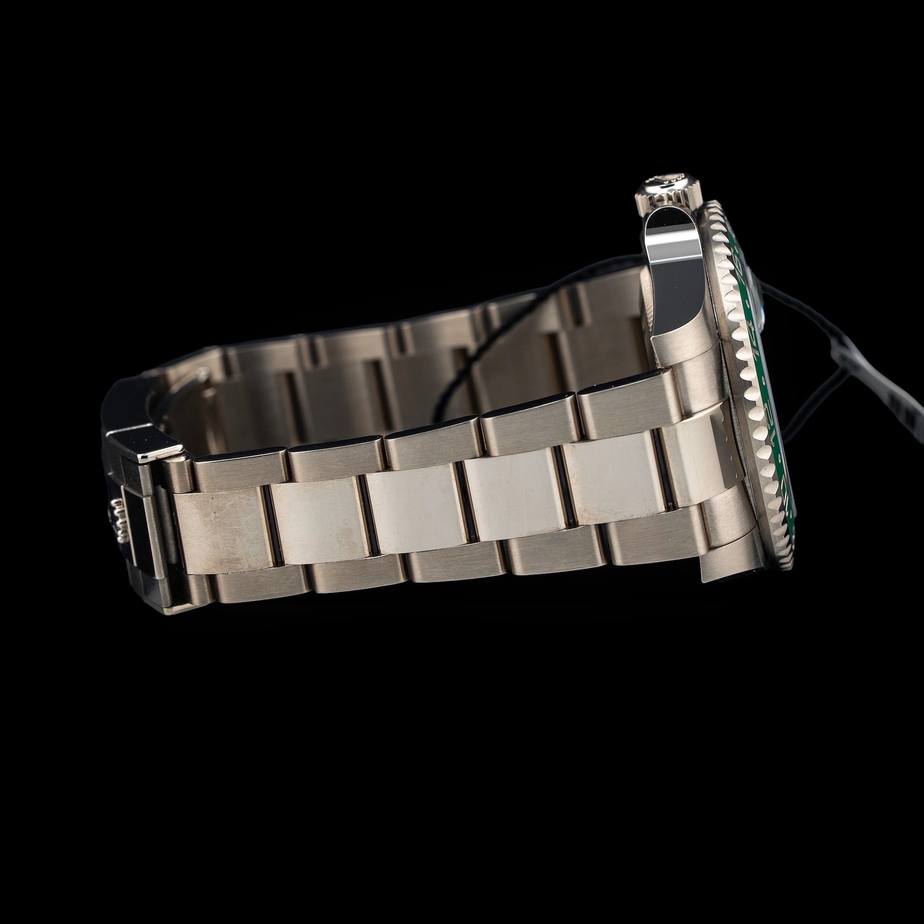 This watch features a 40mm 18 kt white gold case on 18 kt white gold bracelet. This watch also sports a green dial. Powered by a self-winding movement. Water resistance up to 100 meters.