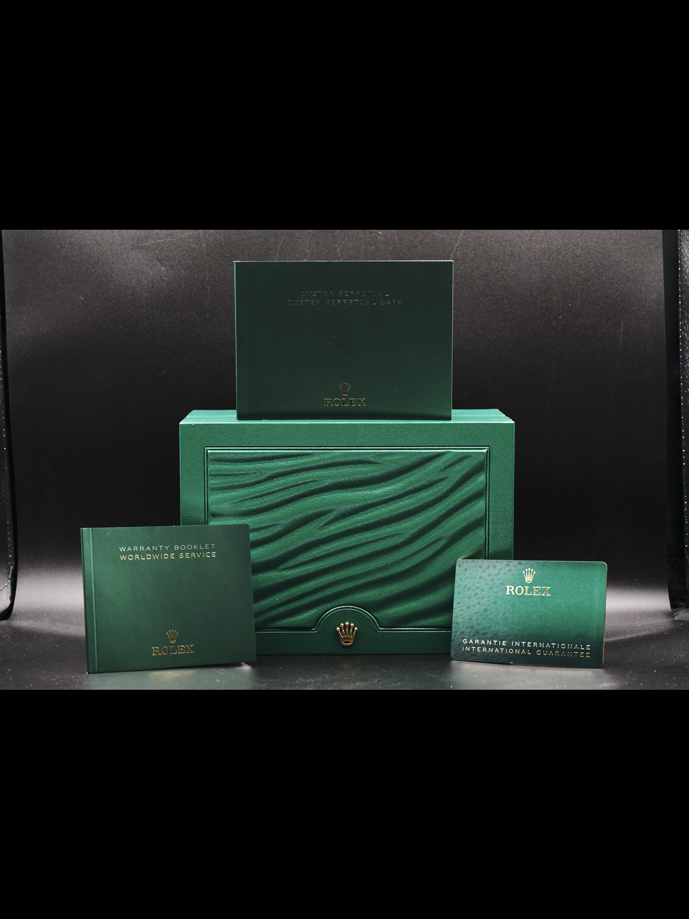 Powered by Rolex Calibre 3230 for a power reserve of approximately 70 hours. Water resistance up to 100 meters.