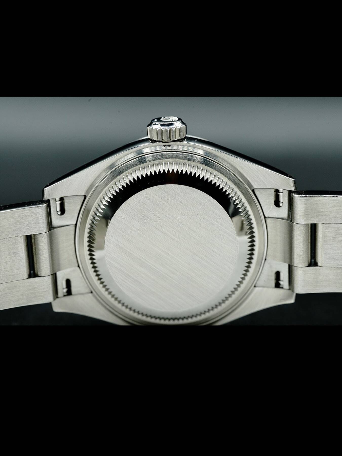 Automatic movement powered by Rolex Calibre 2232 for a power reserve of approximately 55 hours. Water resistance up to 100 meters.