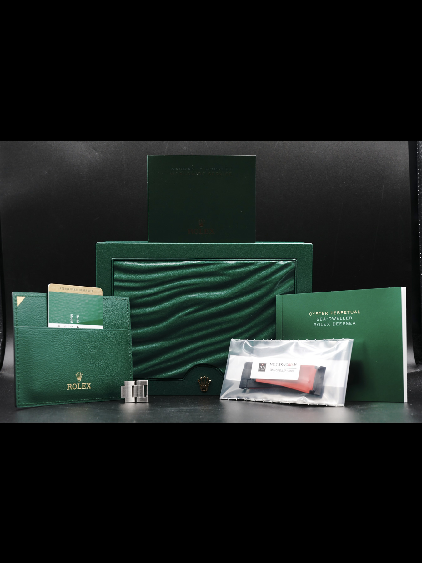 This Rolex Oyster Perpetual Sea-Dweller 126600 is in EXCELLENT condition. This watch includes its original box, instruction manual, worldwide service booklet, and international guarantee dated for February 2018. Extra stainless steel bracelet links and black rubber strap.