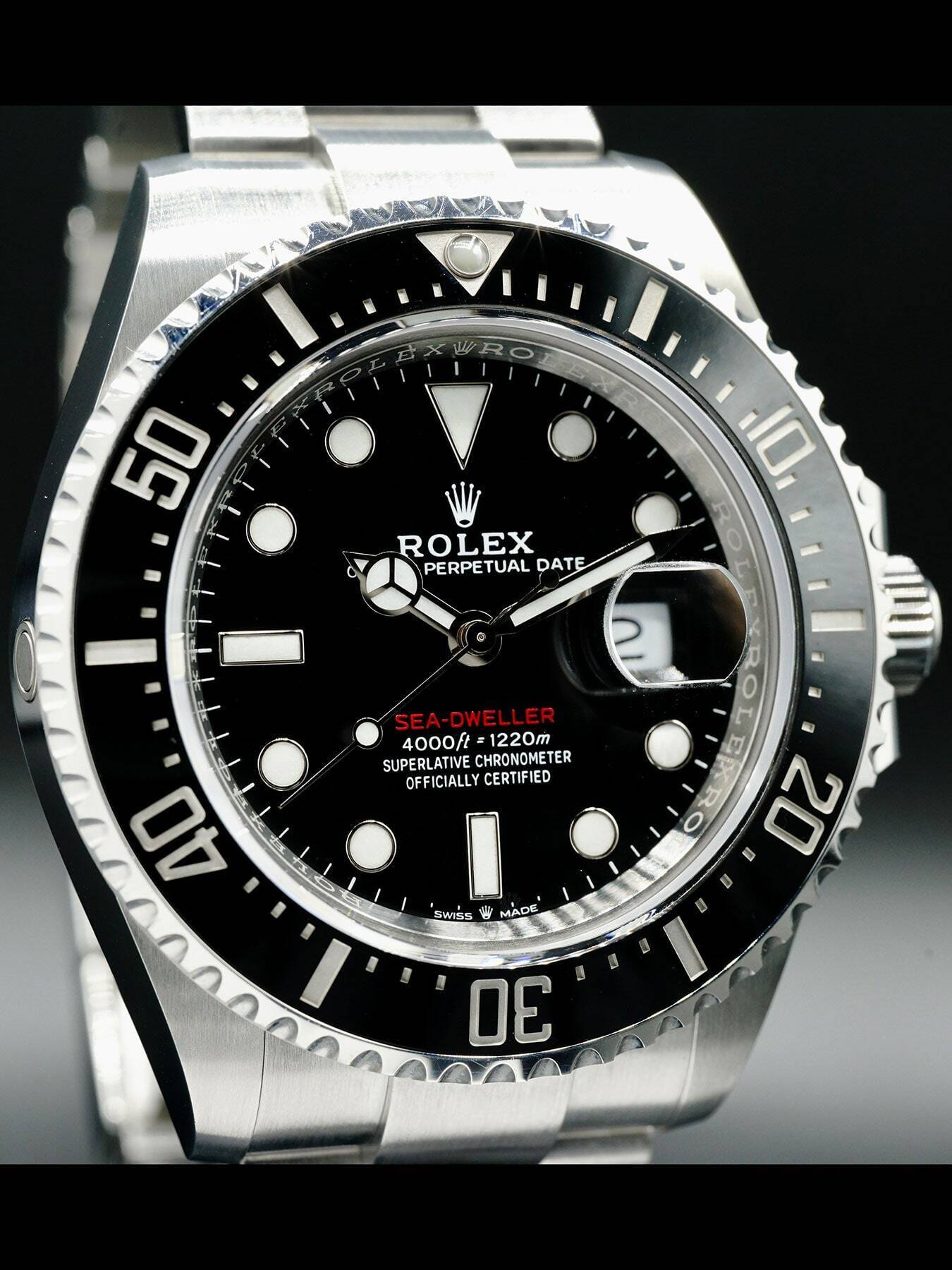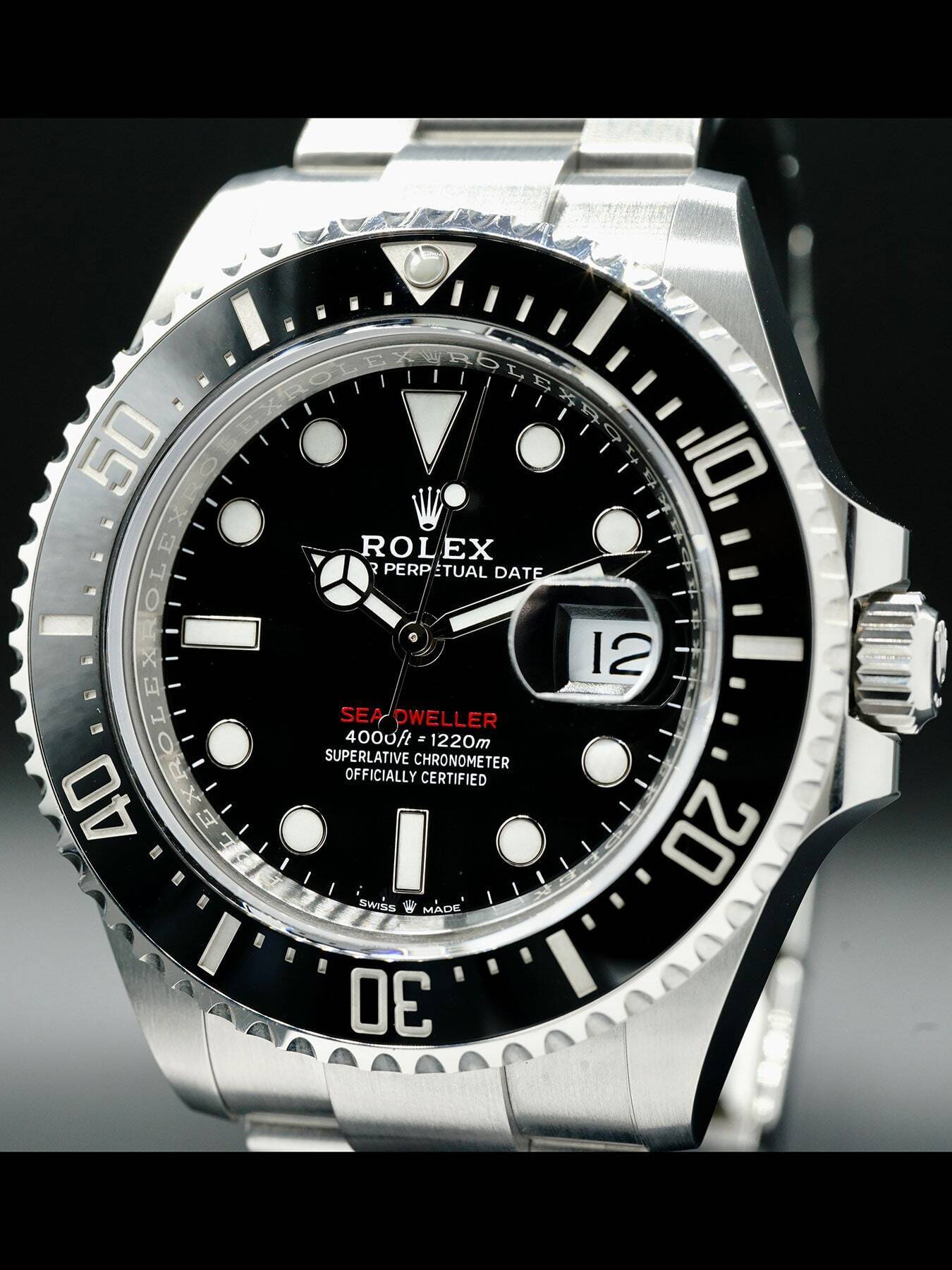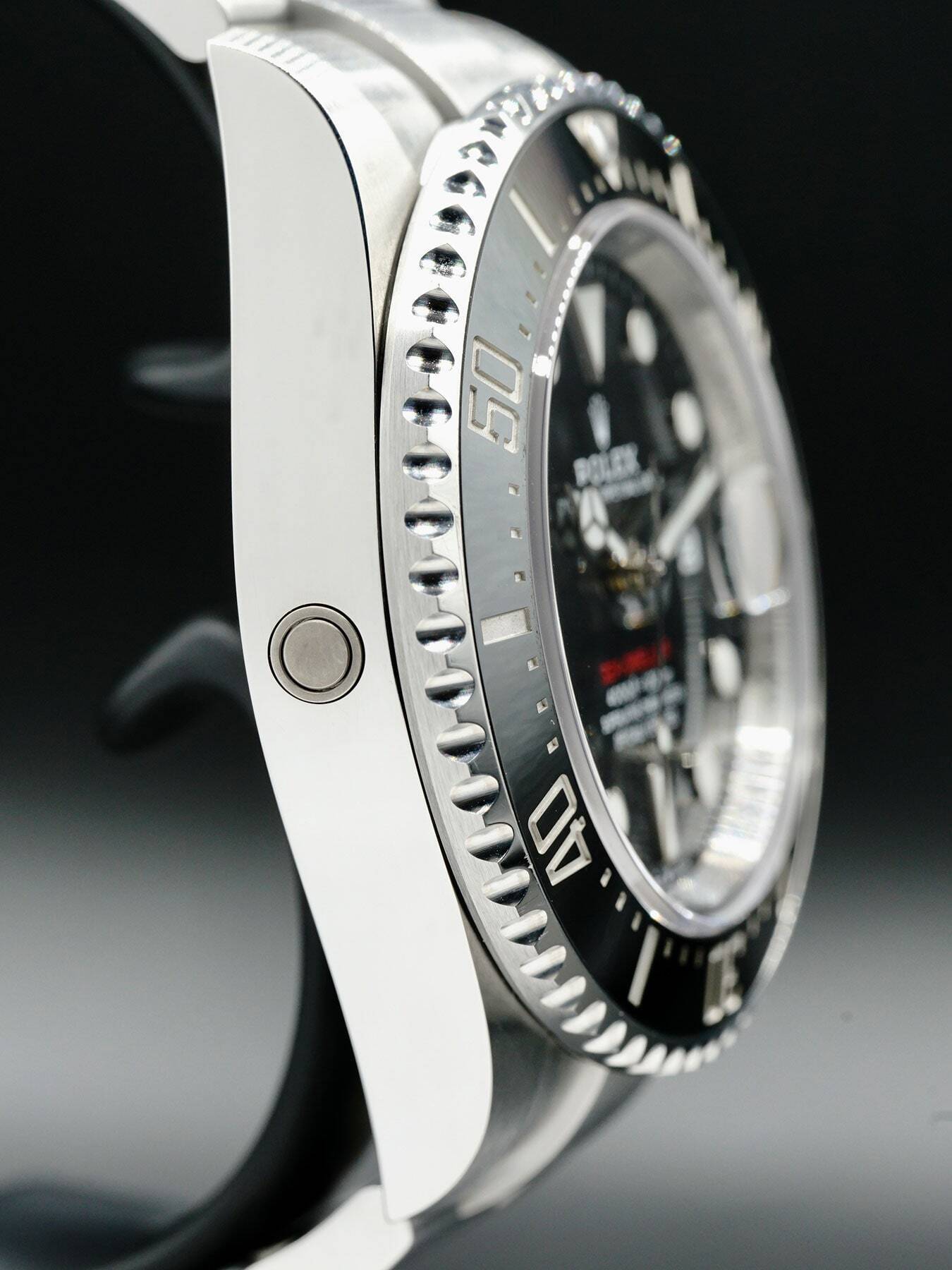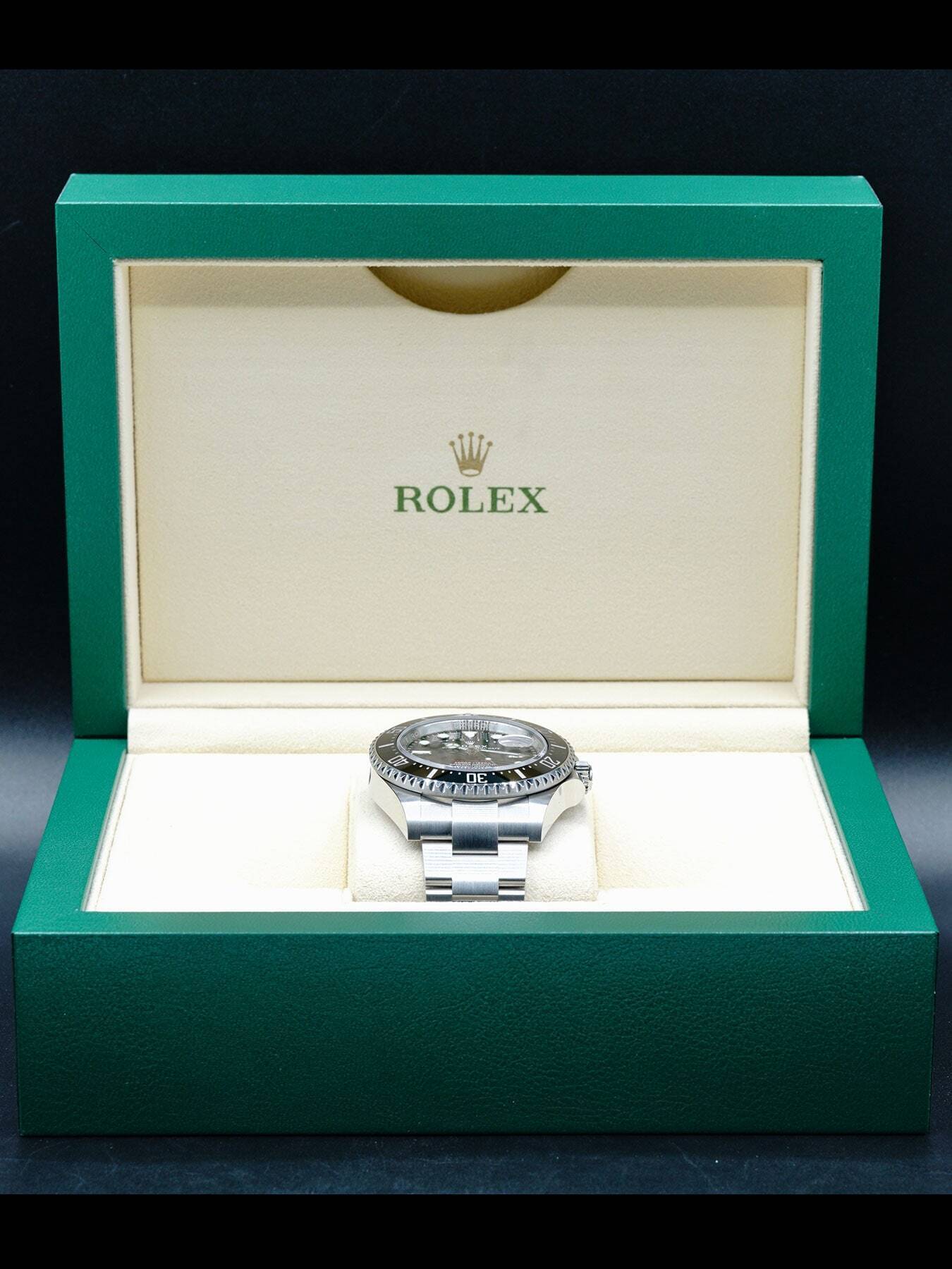 This Rolex Oyster Perpetual Sea-Dweller 126600 is in EXCELLENT condition. This watch includes its original box, instruction manual, worldwide service booklet, and international guarantee card dated for February 2022. Extra stainless steel bracelet links.