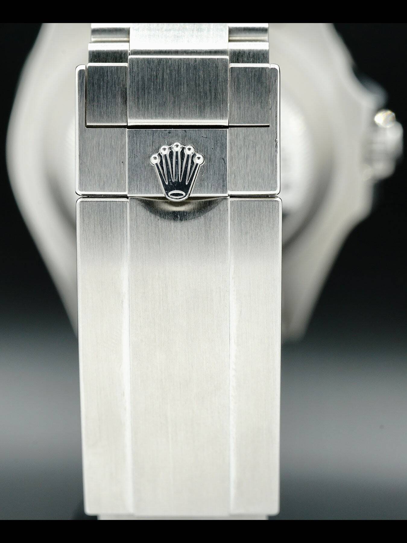 This Rolex Oyster Perpetual Sea-Dweller features a 43mm stainless steel case and black ceramic bezel on a stainless steel bracelet with a folding clasp. This watch also sports a black dial with luminous silver-tone Mercedes-logo, sword shaped style hands covered by scratch resistant sapphire crystal.