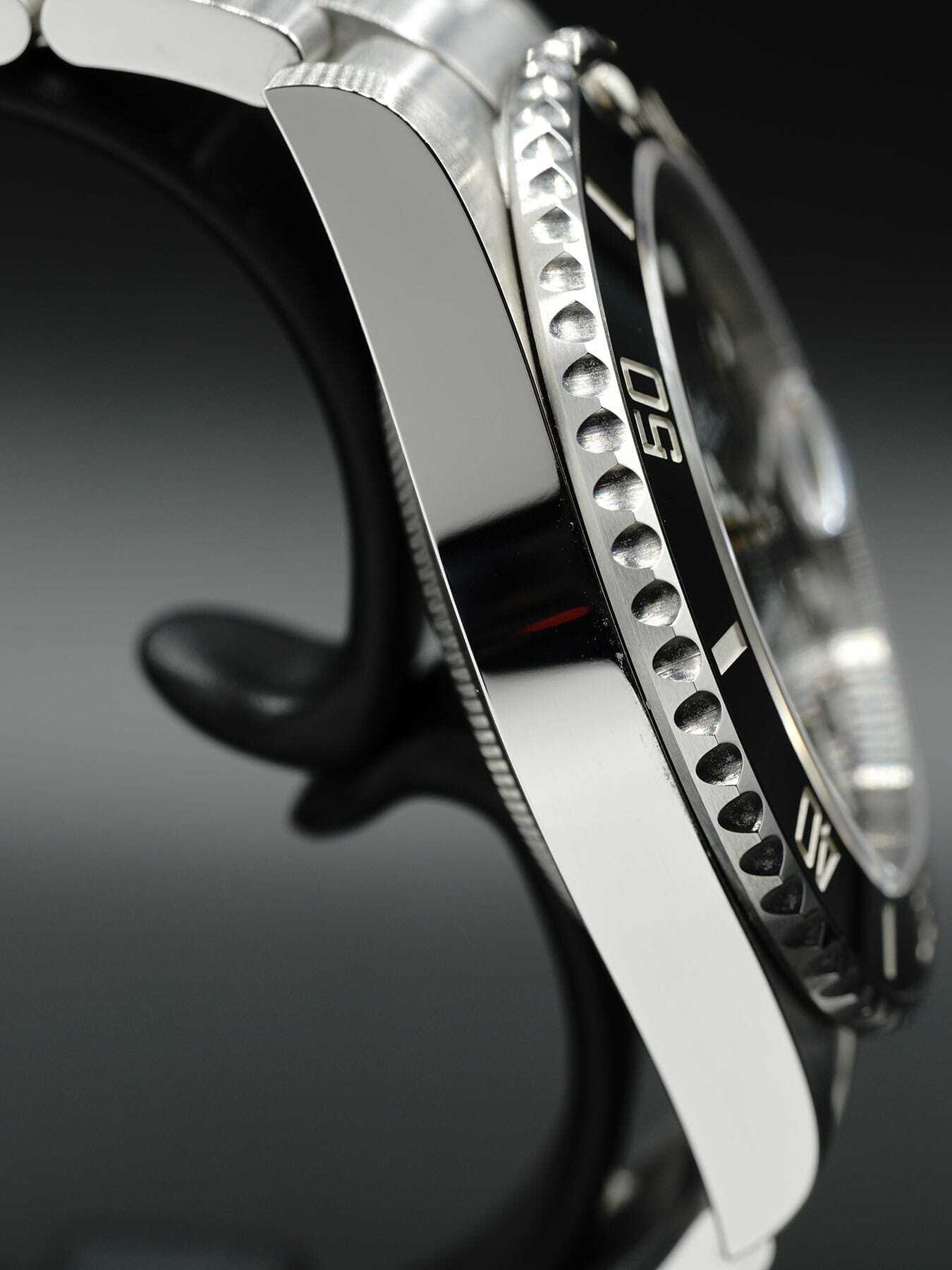 - This timepiece features a 41mm steel case paired with a high quality steel bracelet. It showcases a distinctive black dial and is powered by a precise automatic winding movement. The watch is designed with a water resistance of up to 300m.