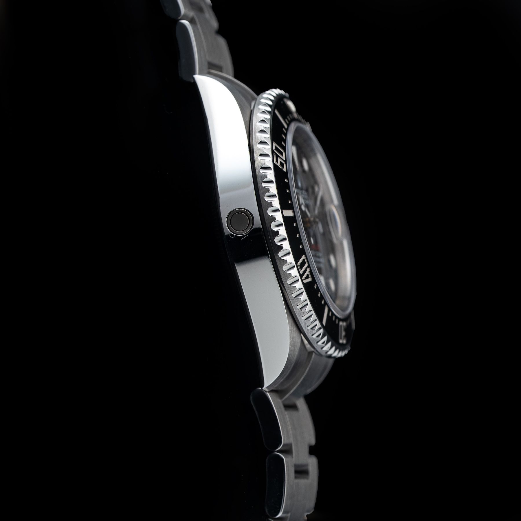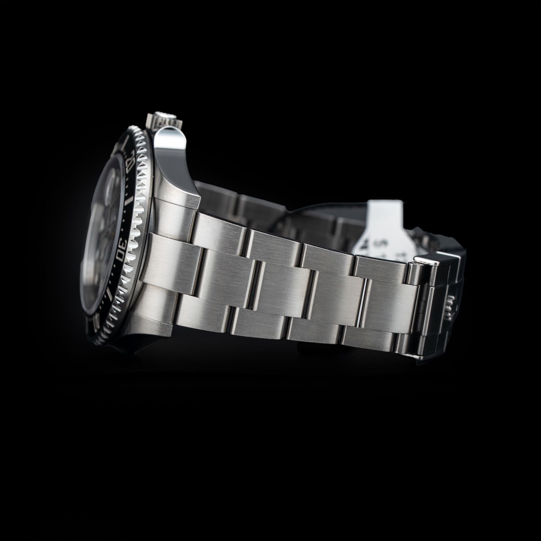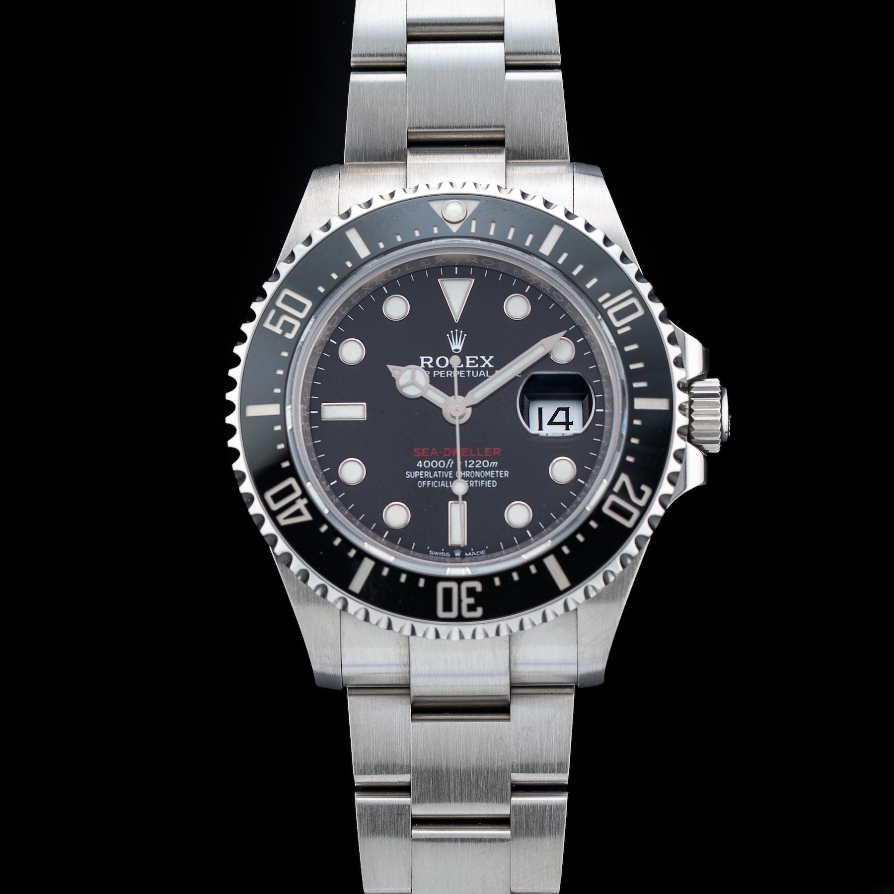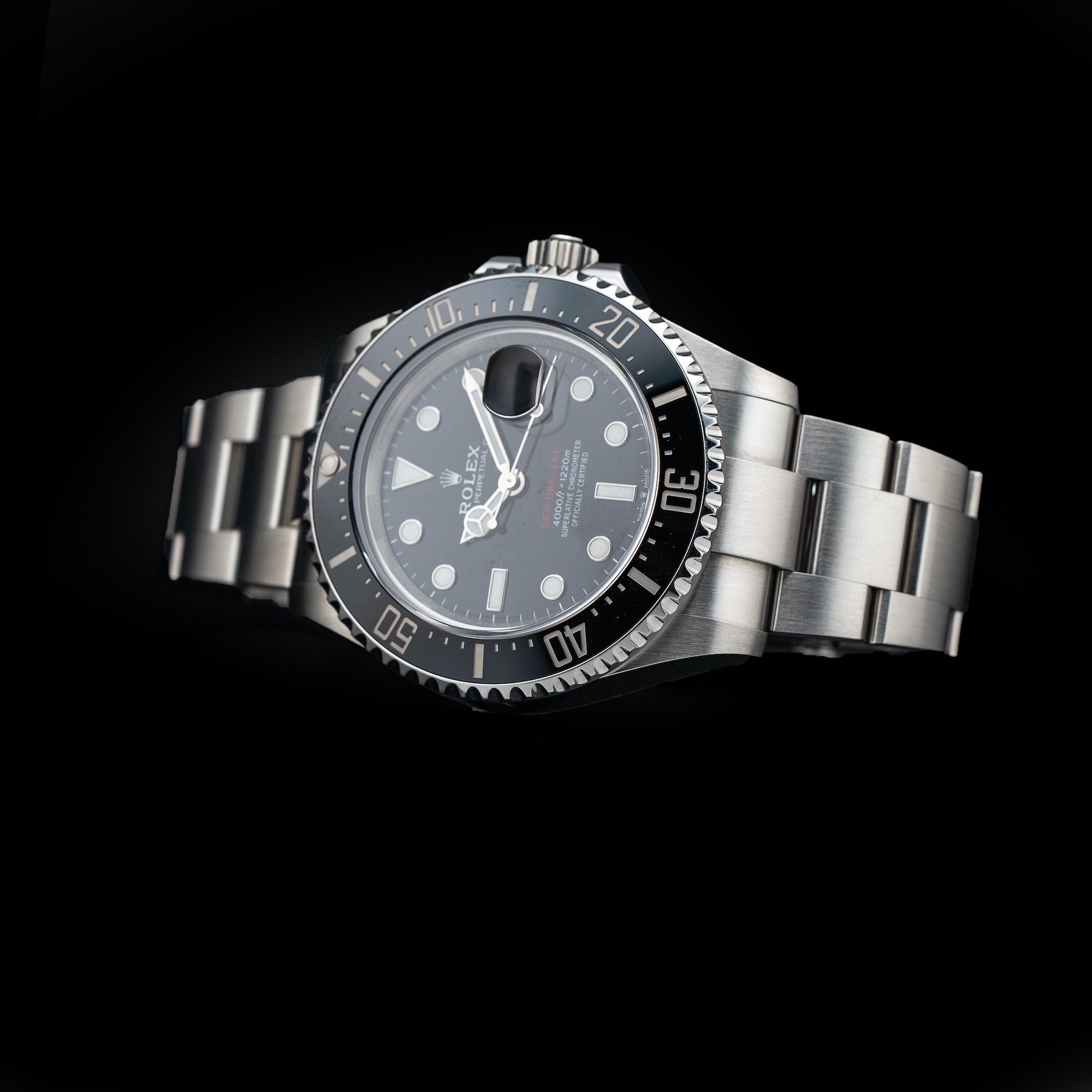 This watch features a 43mm oystersteel case on oystersteel bracelet. This watch also sports a black dial. Powered by a self-winding movement. Water resistance up to 1220 meters.