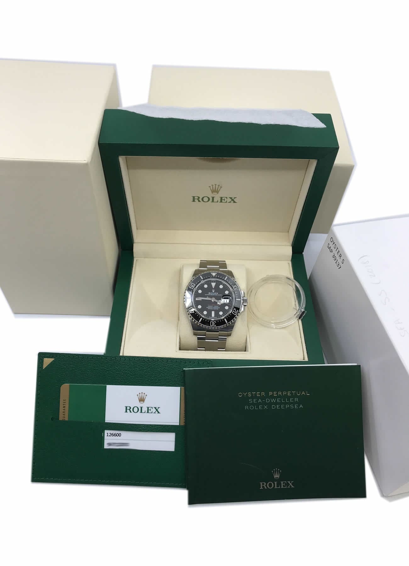 The new Sea-Dweller’s solid-link Oyster bracelet in Oystersteel is fitted with an Oysterlock safety clasp that prevents accidental opening. A double extension system allows adjustments to be made without the use of tools, so that the watch can be worn comfortably over a diving suit up to 7 mm thick. The Fliplock extension link extends the bracelet by 26 mm, while the Rolex Glidelock system allows fine adjustment of the bracelet length in 2 mm increments for a total of approximately 20 mm.
