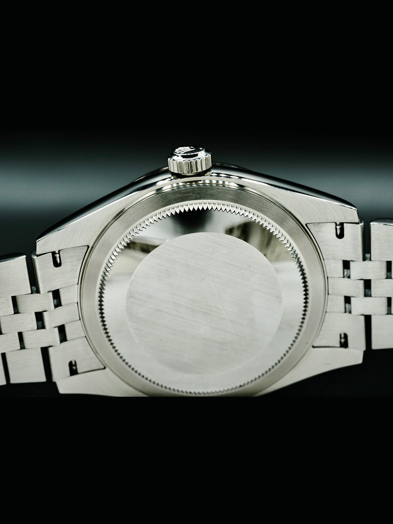 This Rolex Sky Dweller features a 42mm stainless steel & white gold case with a solid case back on a stainless steel & white gold bracelet. This watch also sports a white dial with luminous hands and index dial markers covered by scratch resistant sapphire crystal.
