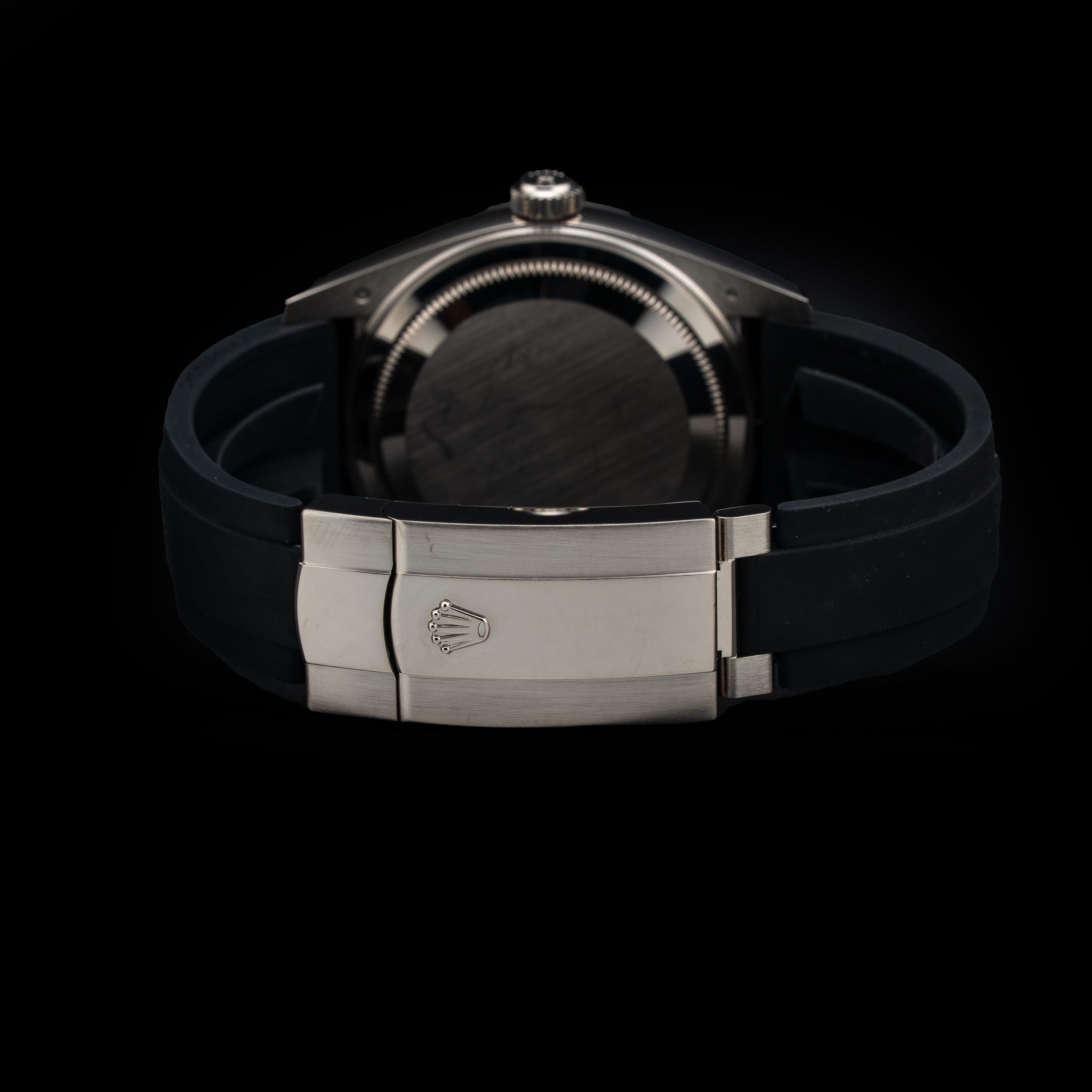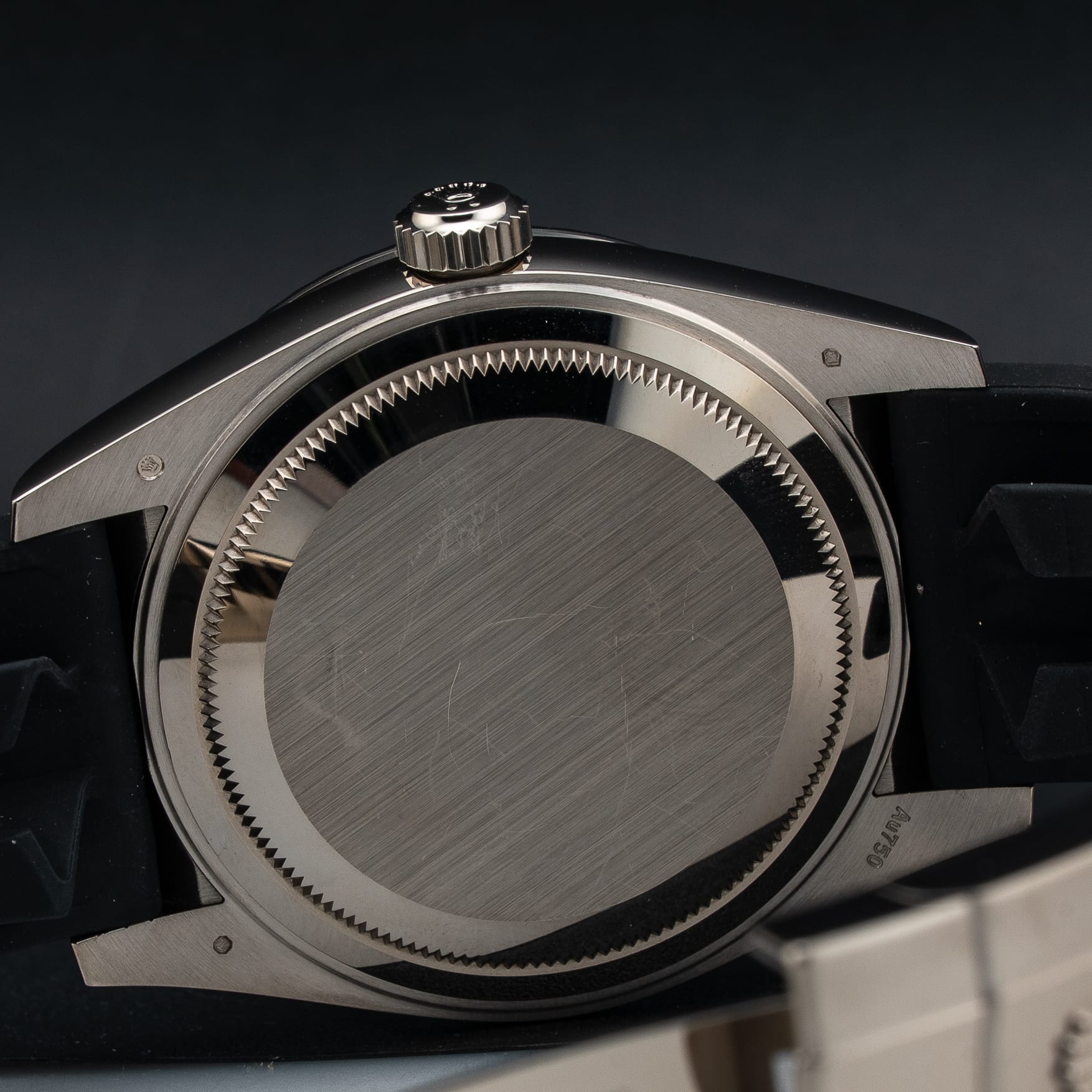 This watch features a 42mm 18 kt white gold case on rubber. This watch also sports a intense black dial. Powered by a self-winding movement. Water resistance up to 100 meters.