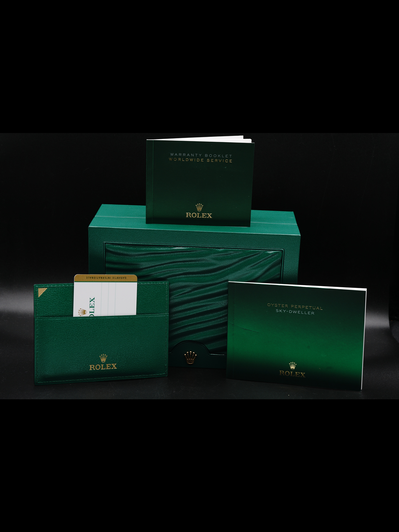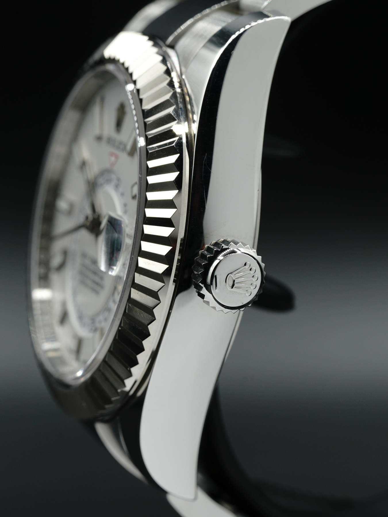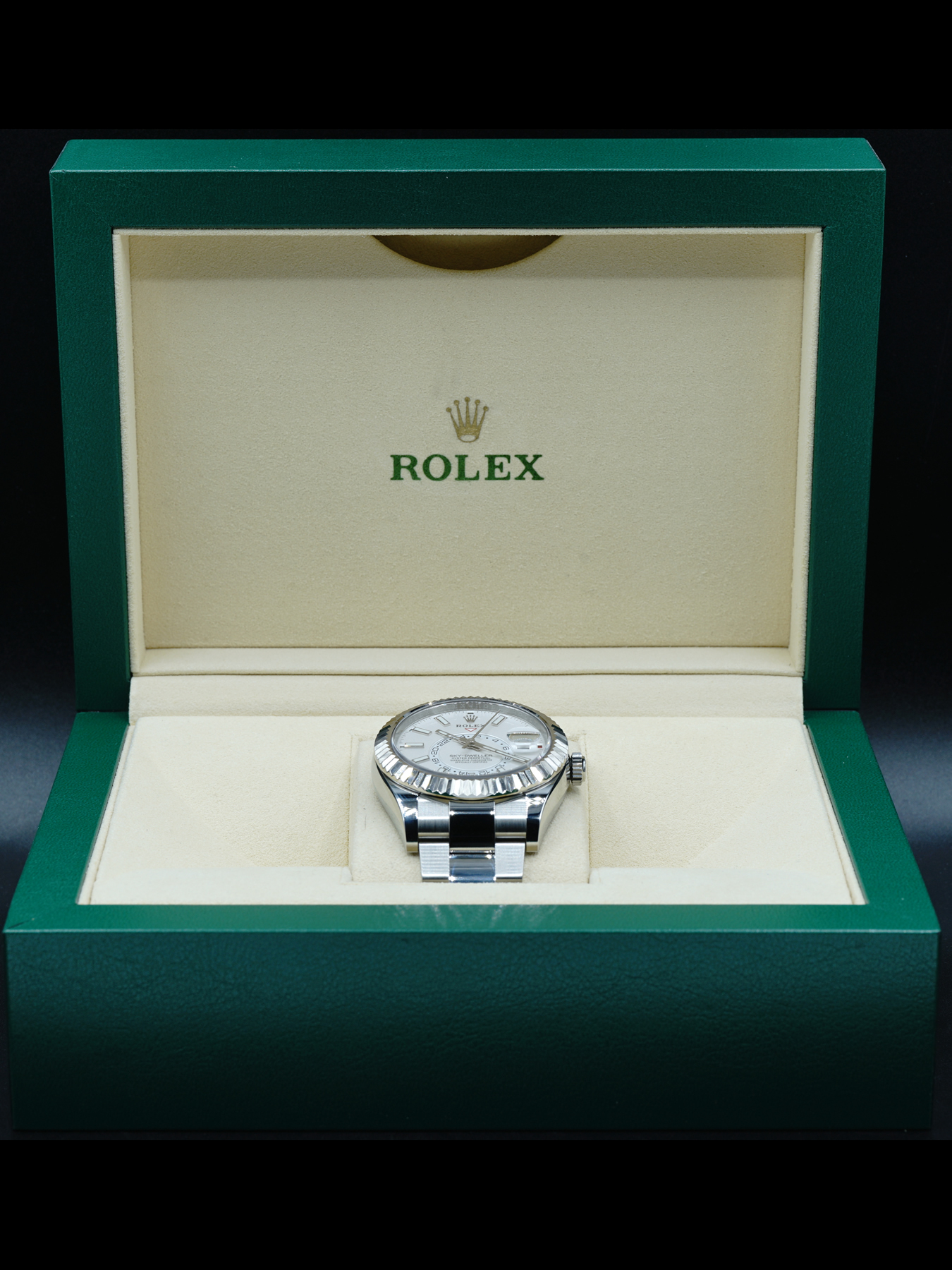 This Oyster Perpetual Sky-Dweller in Oystersteel and white gold with a white dial is in EXCELLENT condition. This watch includes its original box, papers, and warranty dated for April 2018.