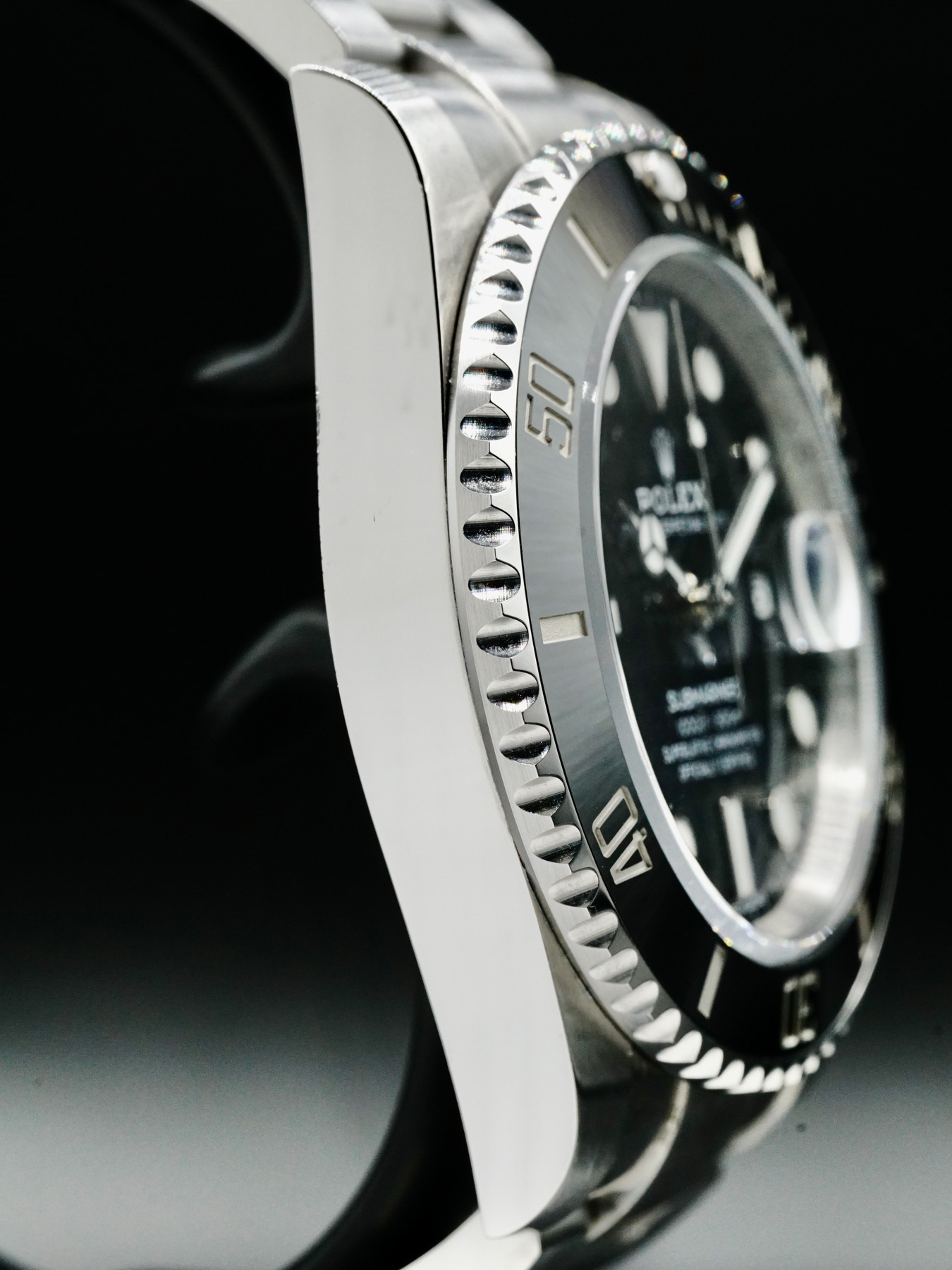 This Rolex Submariner Date 116610LN features a 40mm steel case on bracelet. This watch also sports a black dial.