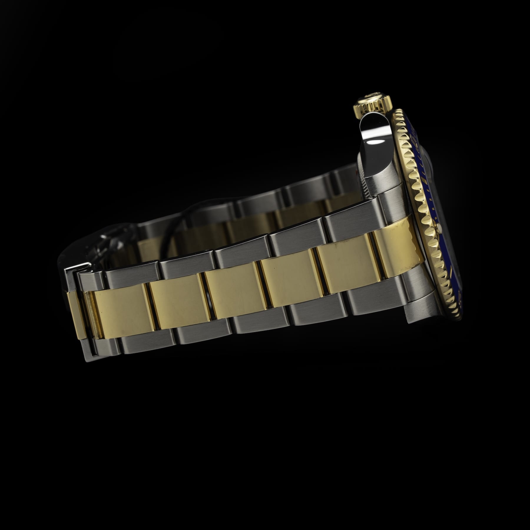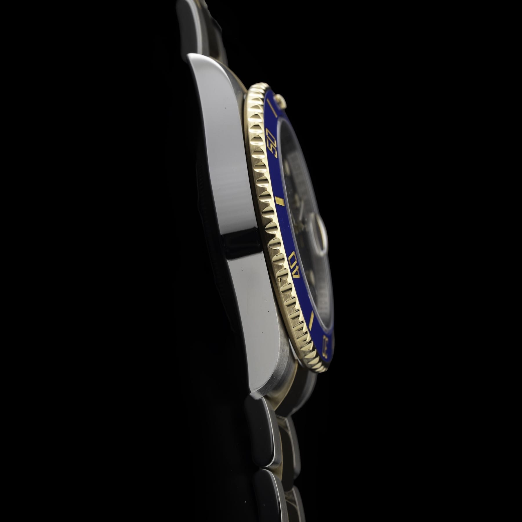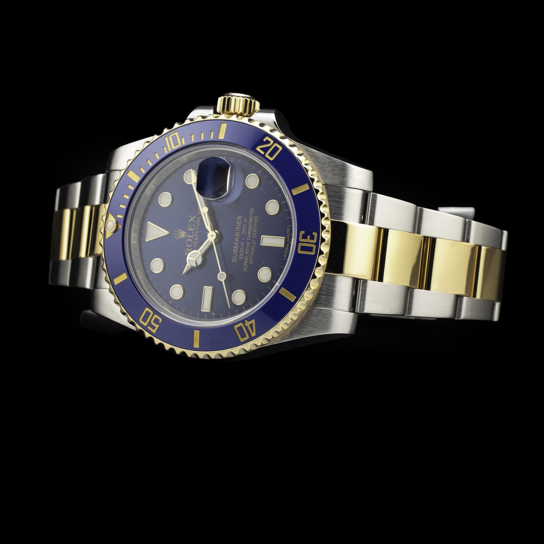 This watch features a 40mm stainless steel case on 18k yellow gold & stainless steel two-tone strap. This watch also sports a blue dial. Powered by an automatic movement. Water resistance up to 300 meters.