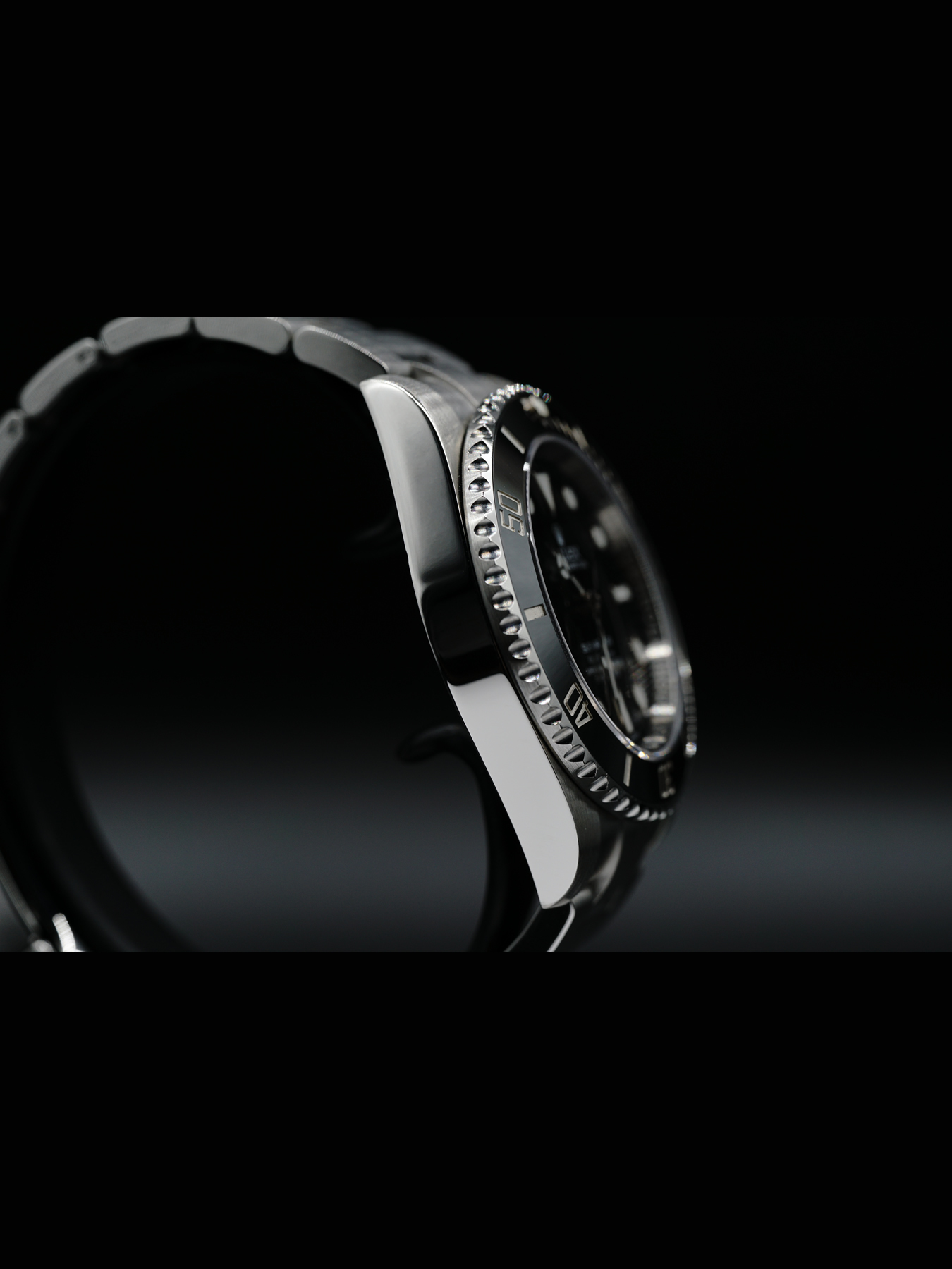 - This timepiece features a 40mm steel case paired with a high quality steel bracelet. It showcases a distinctive black dial and is powered by a precise automatic winding movement. The watch is designed with a water resistance of up to 300m.
