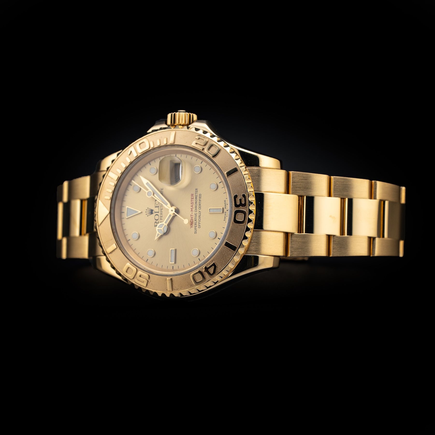 This Rolex Yacht-Master 40mm Yellow Gold 16628 is in GREAT condition. This watch includes only the original box. This Rolex watch has been fully authenticated and certified by a 3rd party organization. You’ll receive the certificate of authenticity with your purchase. Please note, the photos shown are of the actual watch you will receive.