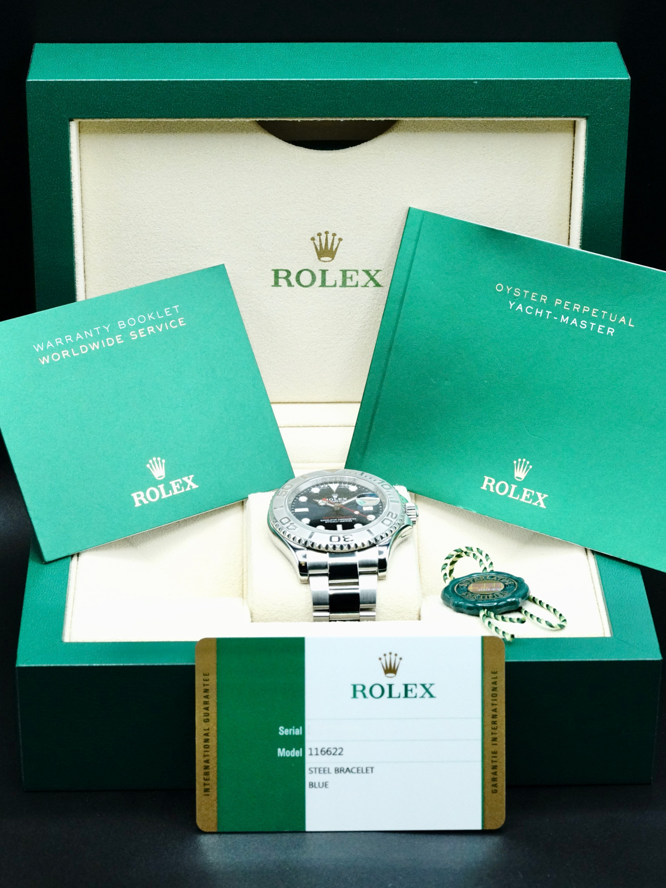 This Rolex Yacht-Master 40 116622 is in GREAT condition. This watch includes its original box, original papers, and warranty card dated for January 2018. This Rolex watch has been fully authenticated and certified by a 3rd party organization. You’ll receive the certificate of authenticity with your purchase.