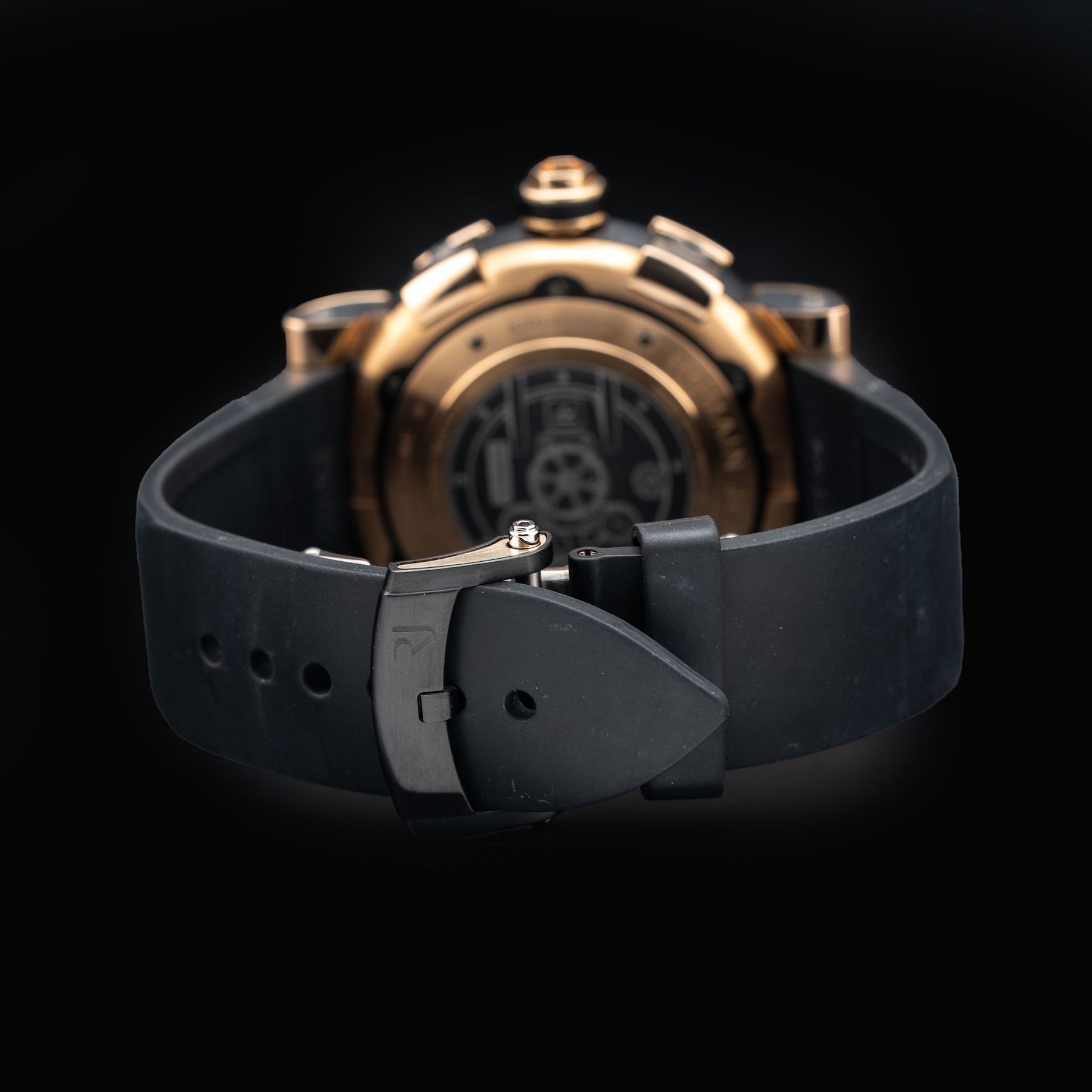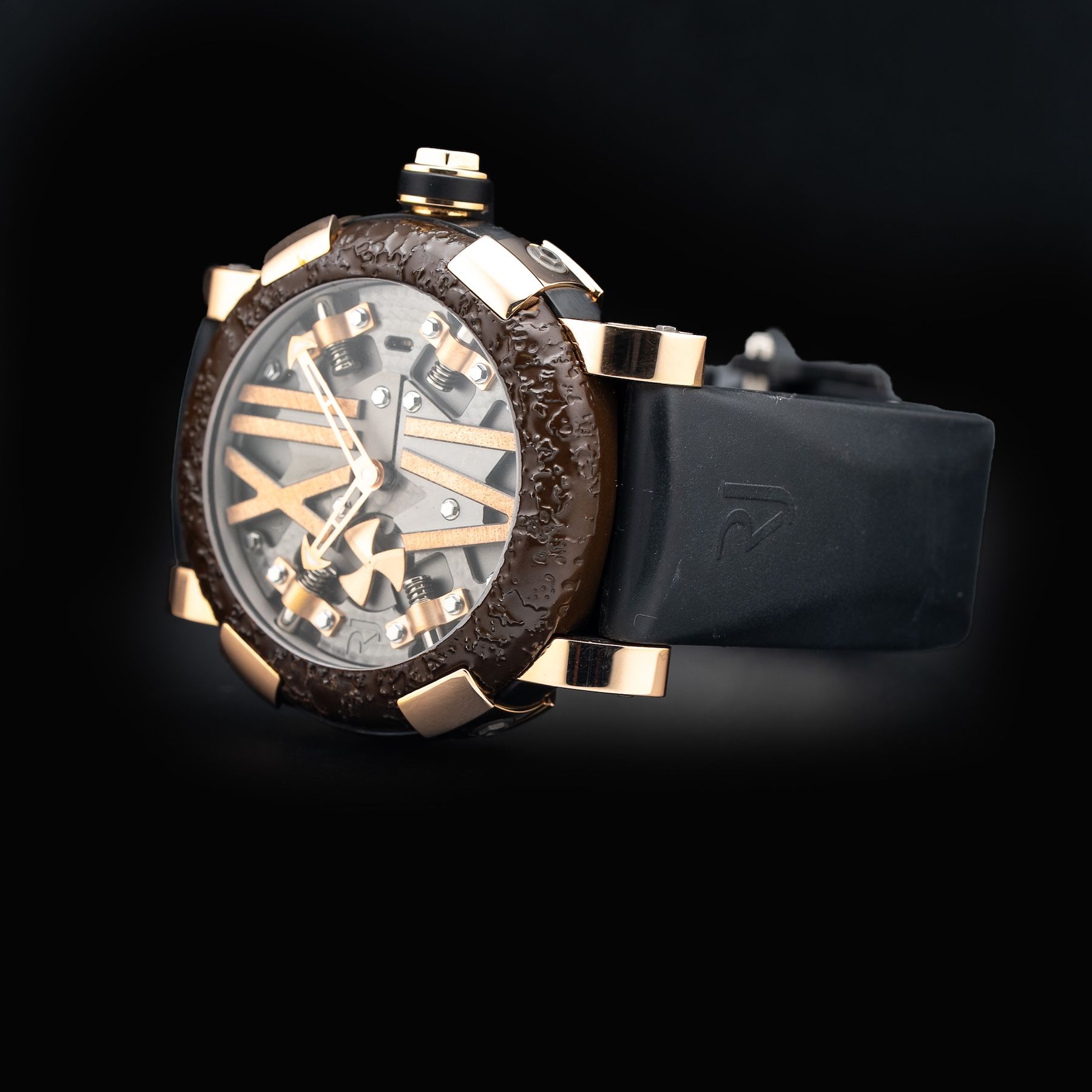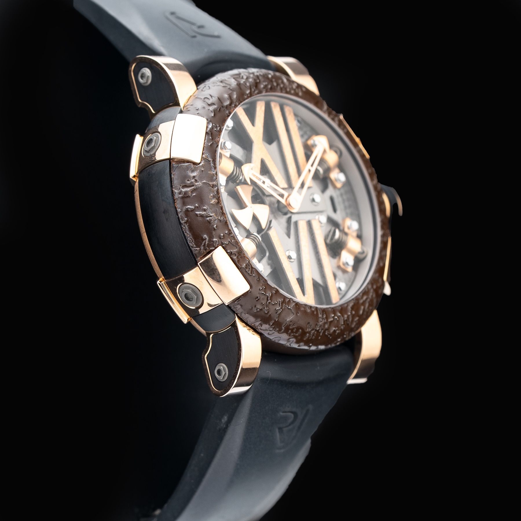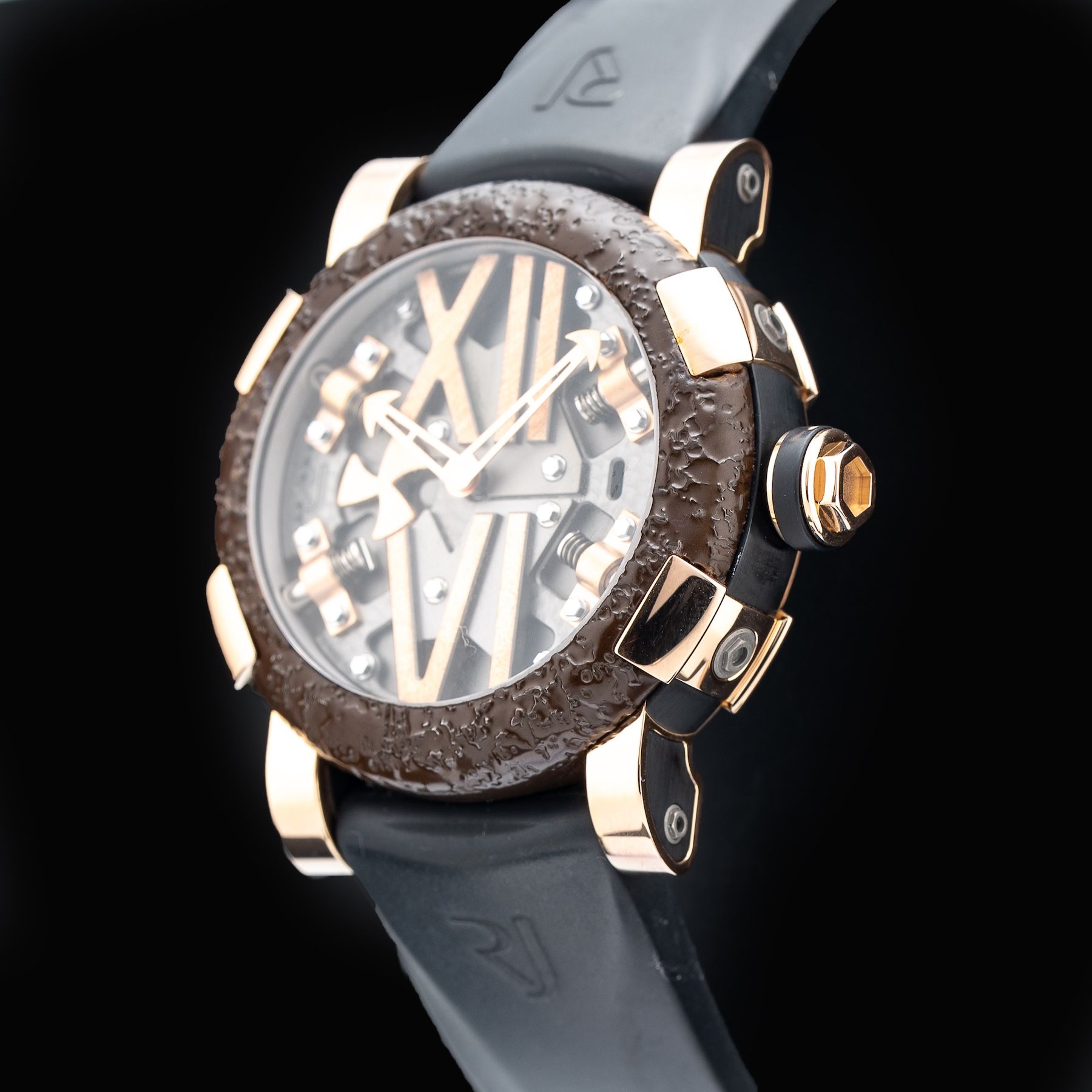 This Romain Jerome RJ.T.AU.SP.008.01 Titanic-DNA Steampunk Gold Rusted is in GREAT condition, it has boxes, papers and warranty card dated 10/03/2007. This watch has been fully authenticated and certified by Exquisite Timepieces. Please note, the photos shown are of the actual watch you will receive.