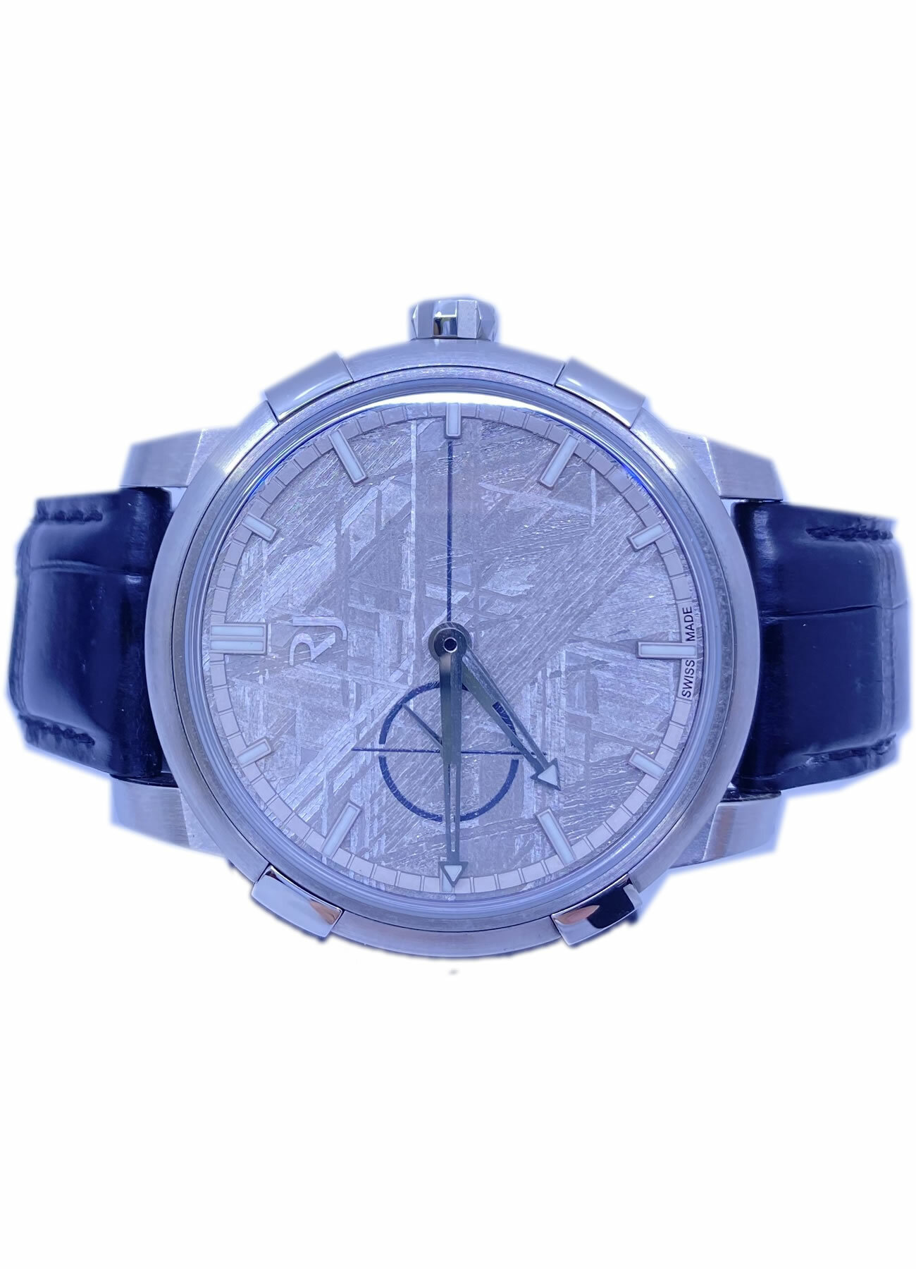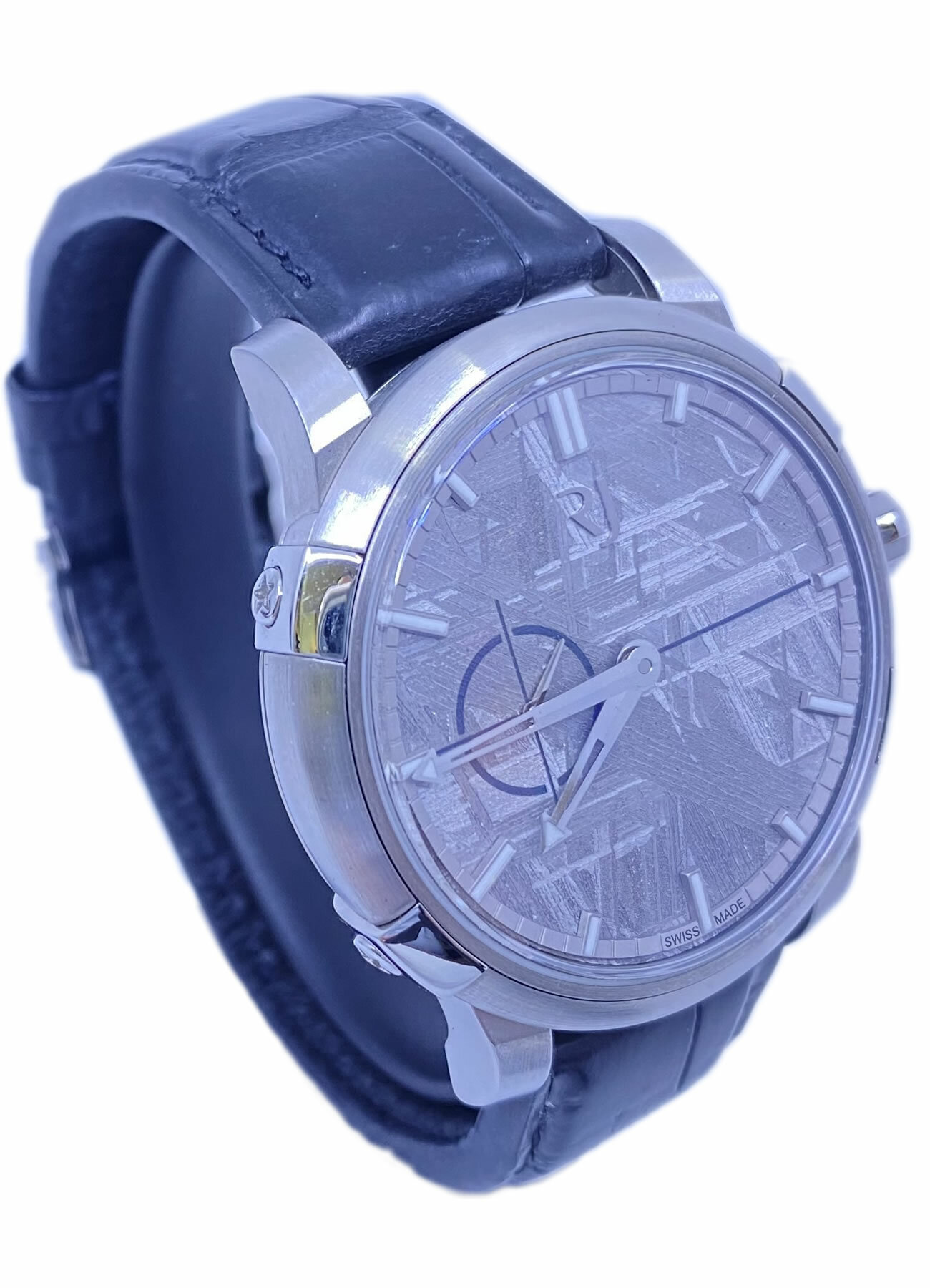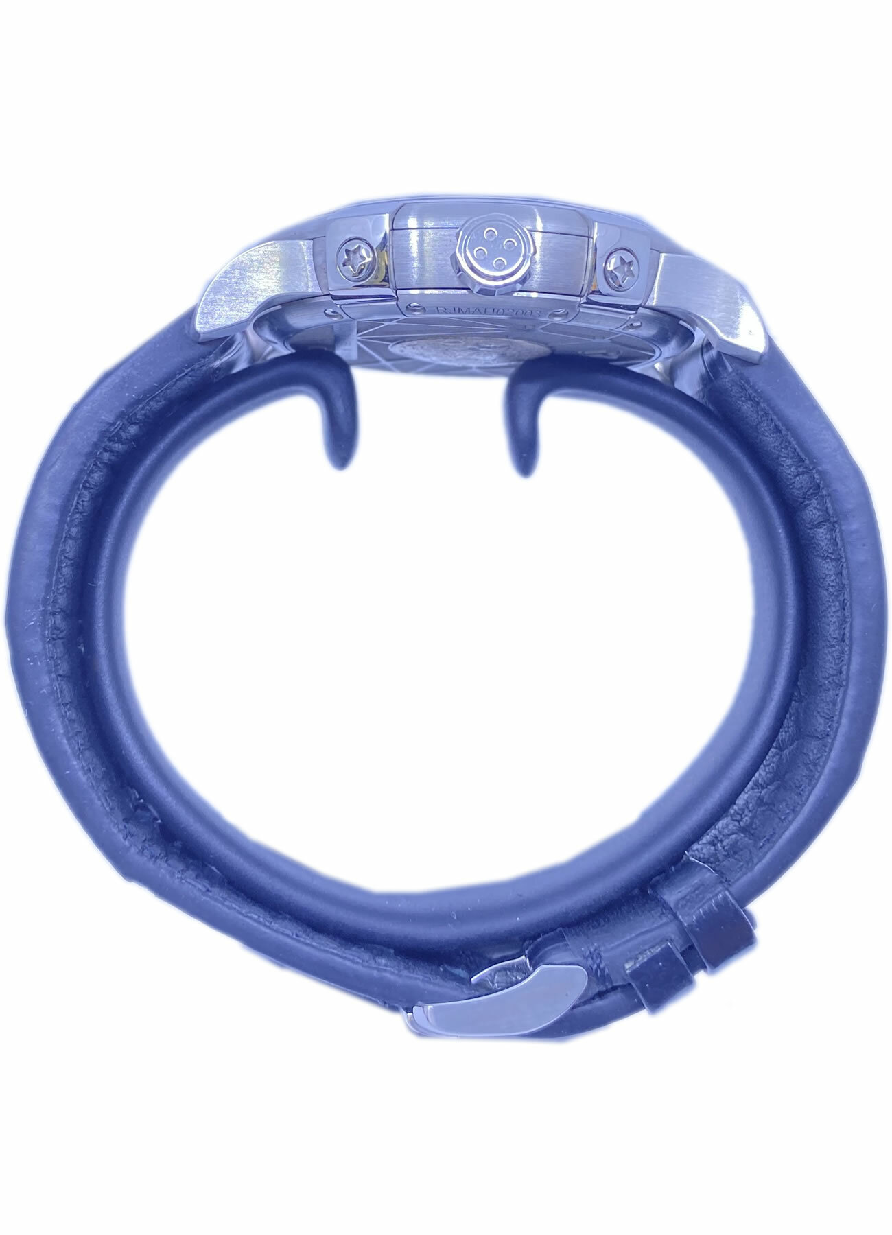 - This timepiece features a 43mm steel case paired with a high quality leather strap. It showcases a distinctive grey dial and is powered by a precise automatic winding movement. The watch is designed with a water resistance of up to 50m.