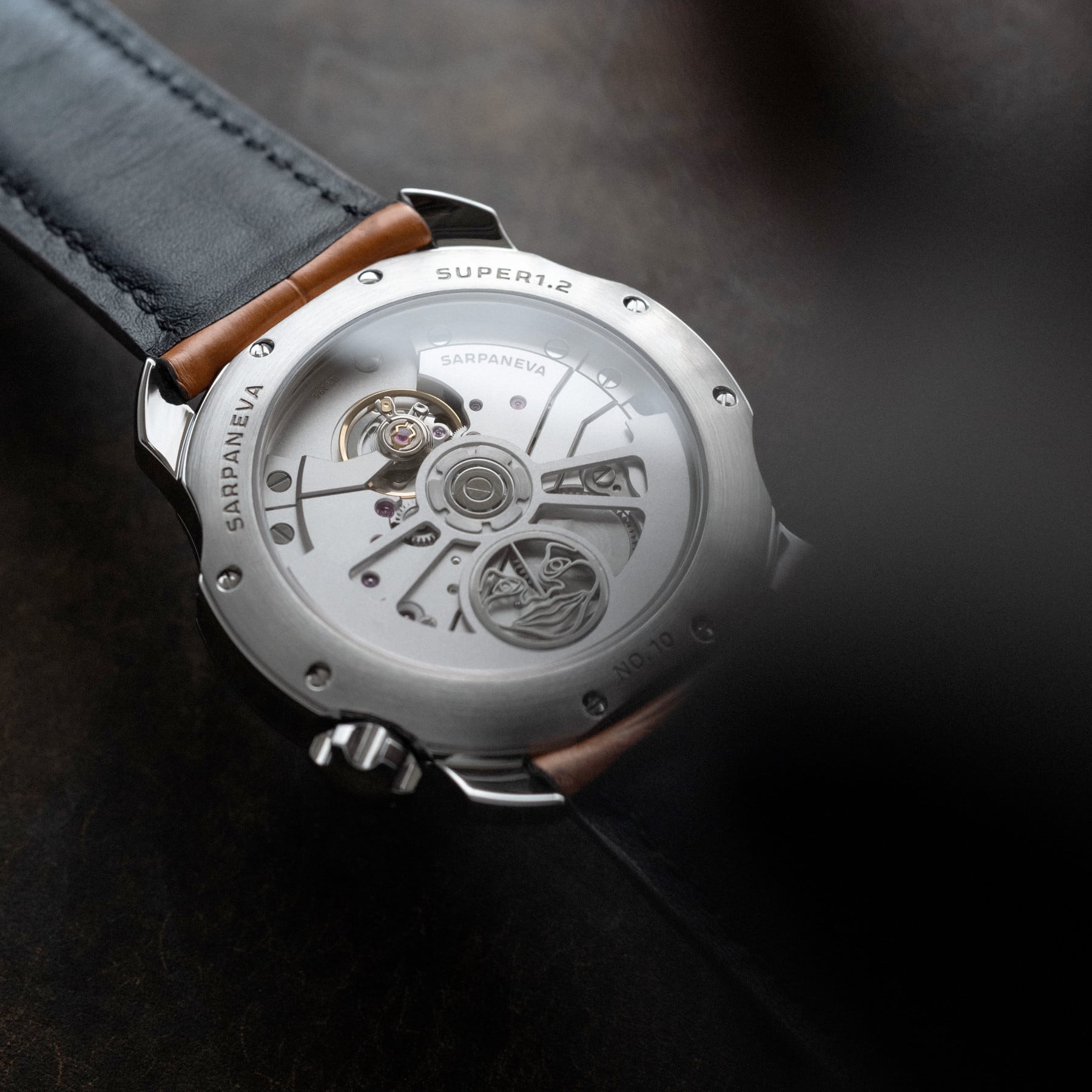 This Sarpaneva is now powered by the exclusive Modified Chronode P1003 Calibre, crafted for Sarpaneva. The winding mass featuring the iconic Sarpaneva Moonface relief, sculpted at the Candy Factory workshop.