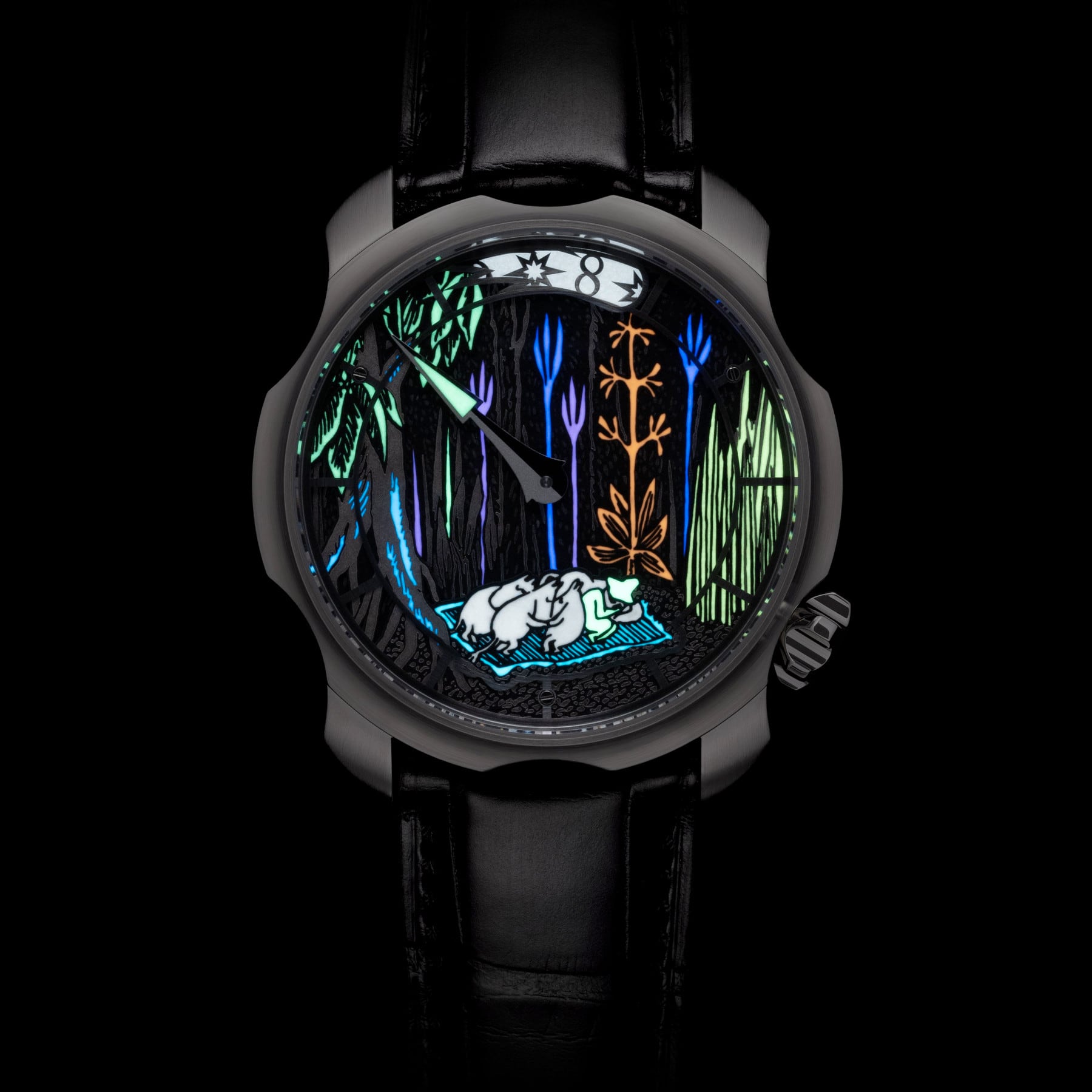 3 Part Stainless Steel, hand finished & hand painted. Illustration from the book "Comet i Moominland", Tove Jansson 1946. © Moomin Characters™, Swiss (6) Super-Luminova®