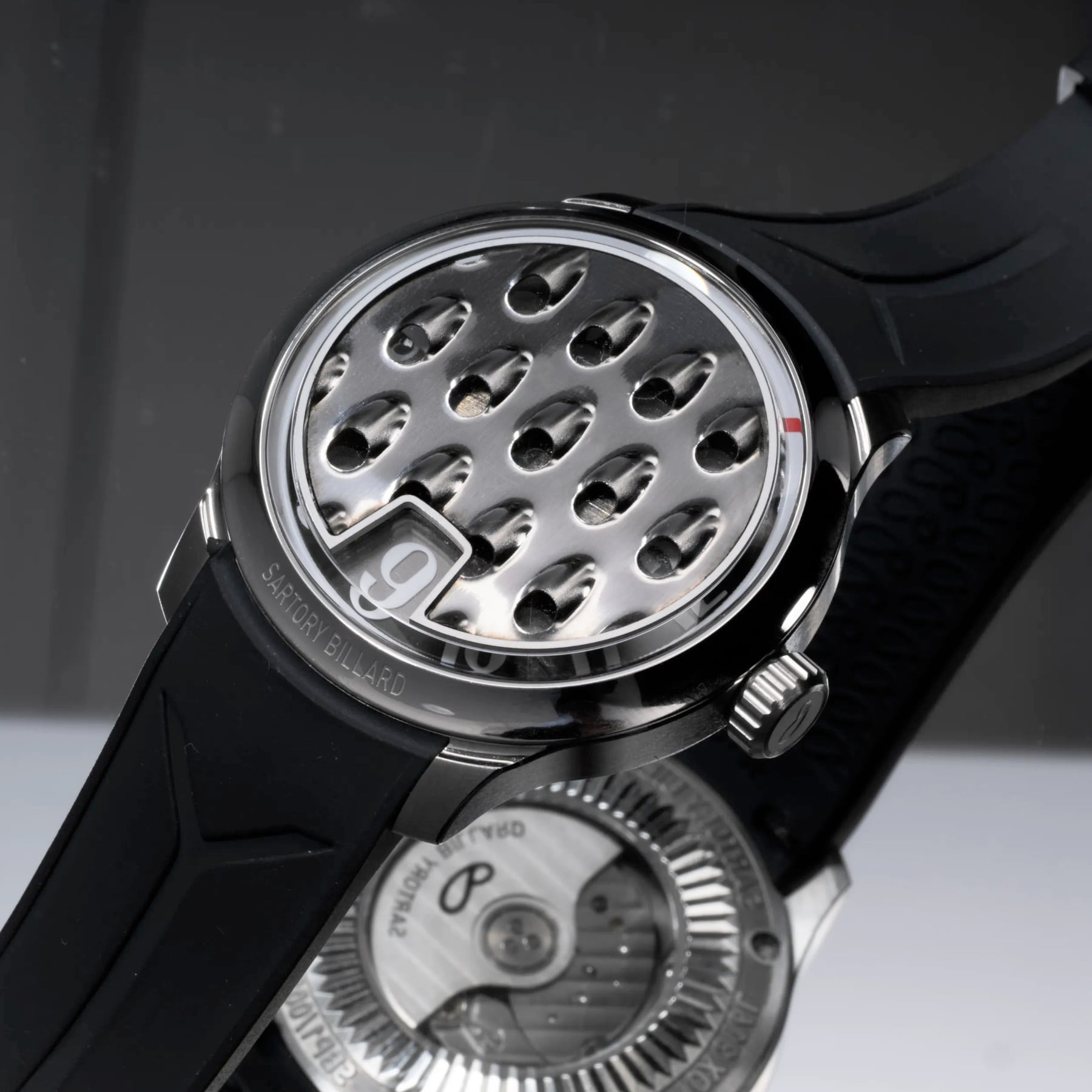 The SB10 marks a new step for Sartory-Billard. A jumping hour watch conceived around touch, where material is no longer just seen, but becomes a surface to explore. The deliberately minimal display frees a central space designed as a direct point of contact.