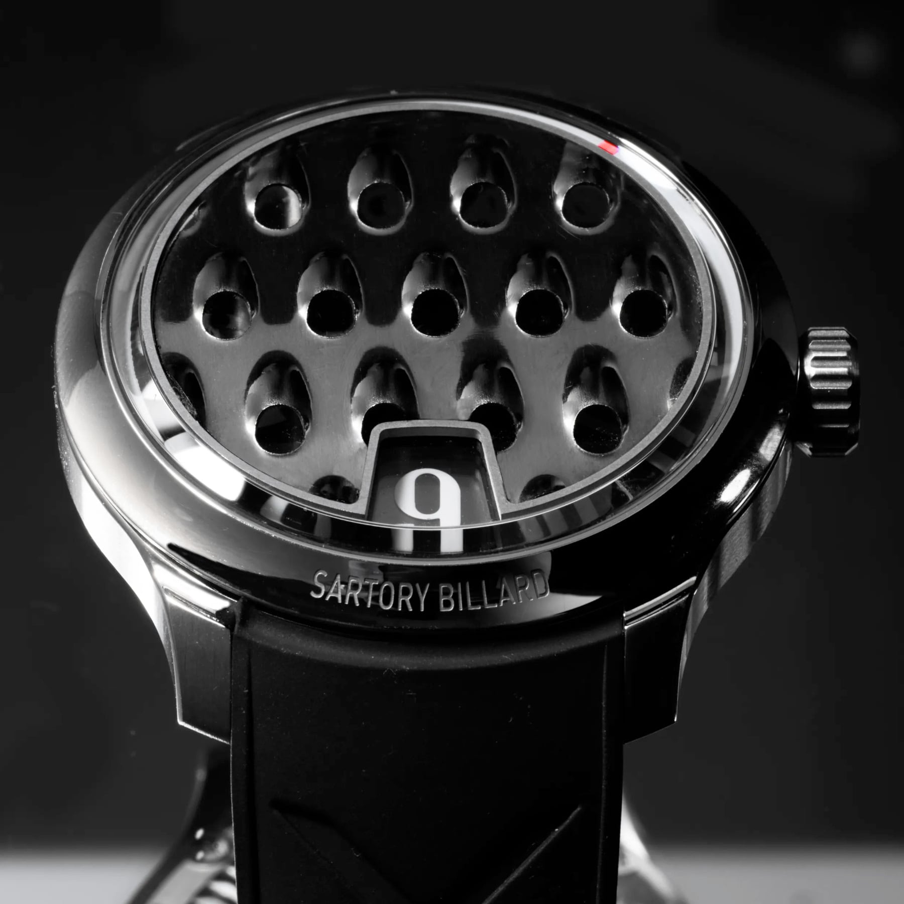 With the SB10 Cheese Grinder, Sartory-Billard introduces a deliberately straightforward approach to material, integrating a cabochon crafted from a Swiss Jura cheese grater. Selected for the precision of its stamping and the regularity of its perforations, this surface retains the properties that define its original function, while offering a new interpretation—both functional and unexpected.