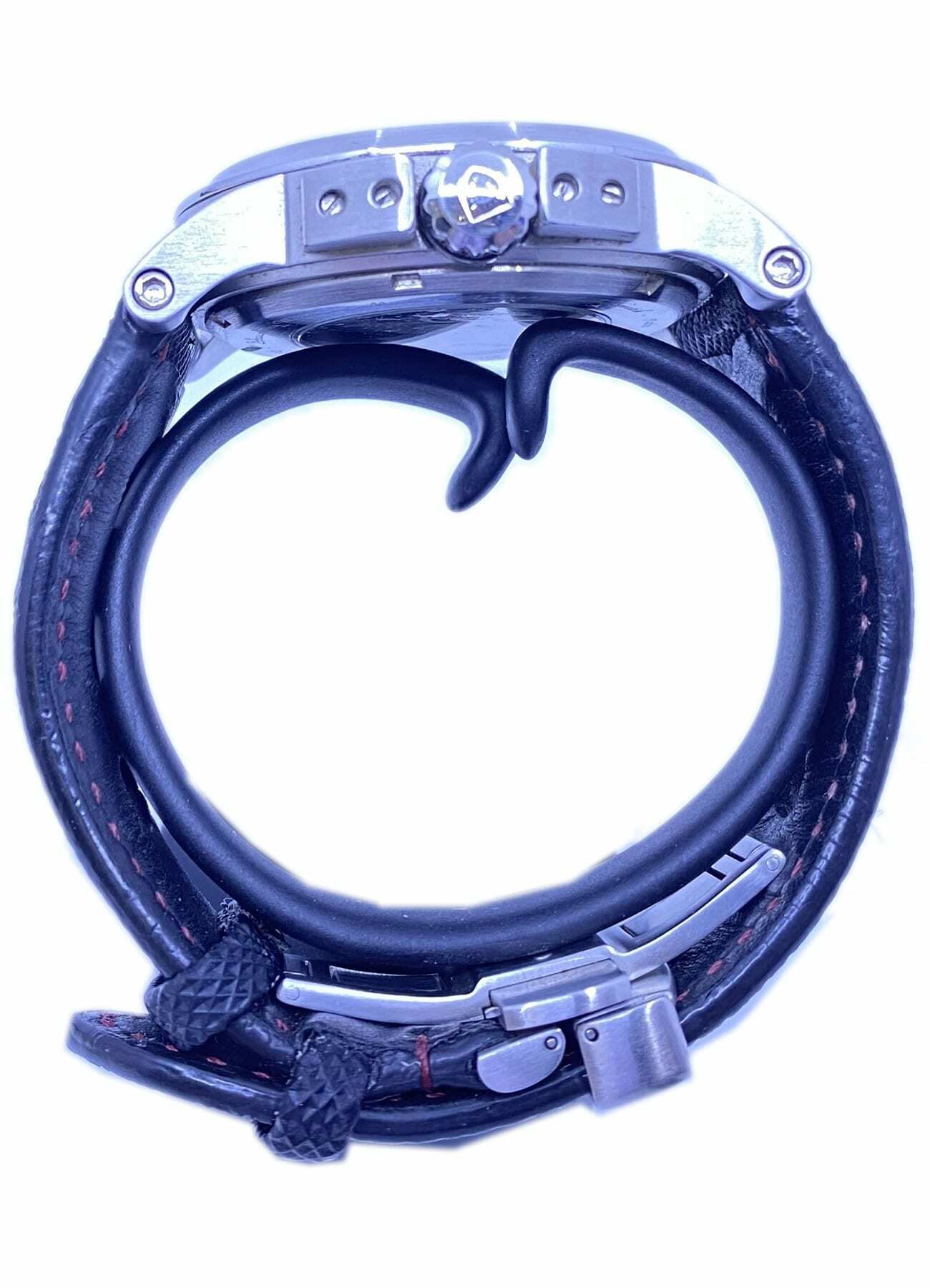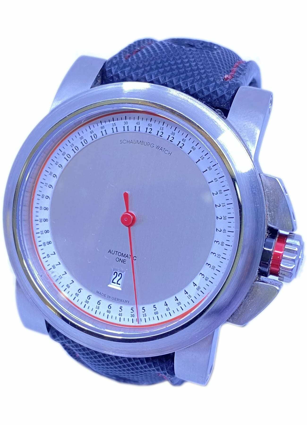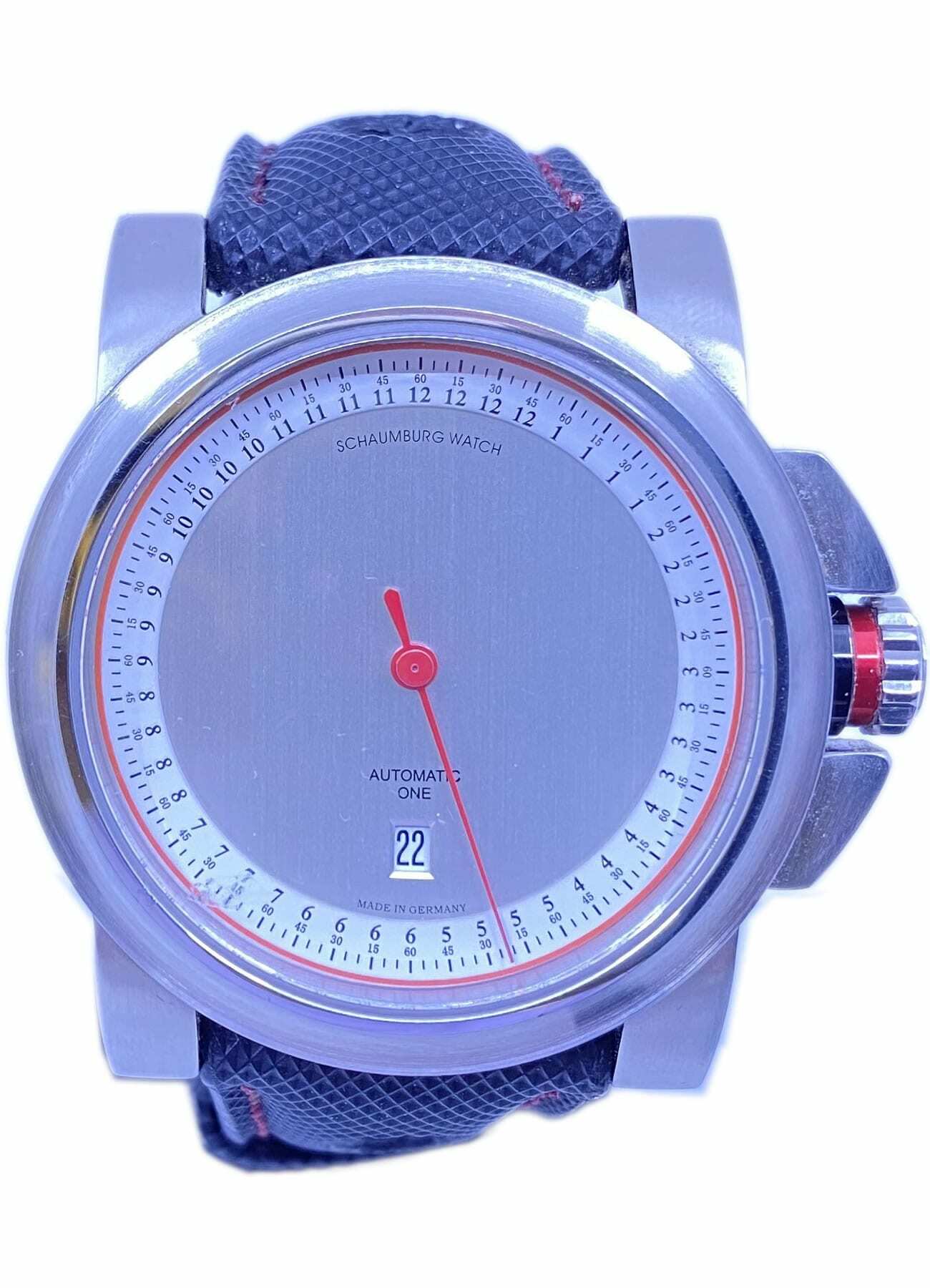 - This timepiece features a 46mm steel case paired with a high quality leather strap. It showcases a distinctive grey dial and is powered by a precise automatic winding movement. The watch is designed with a water resistance of up to 50m.