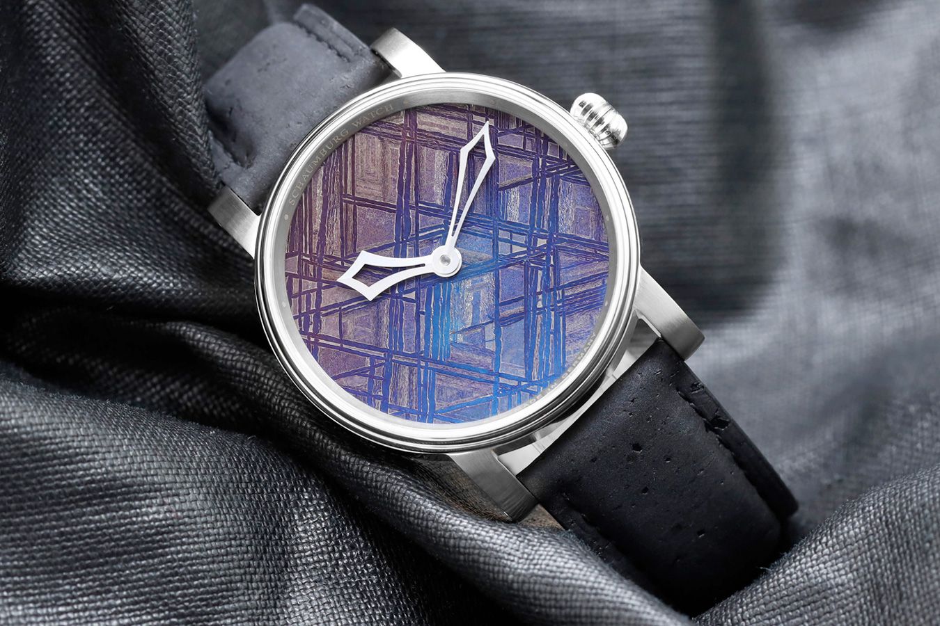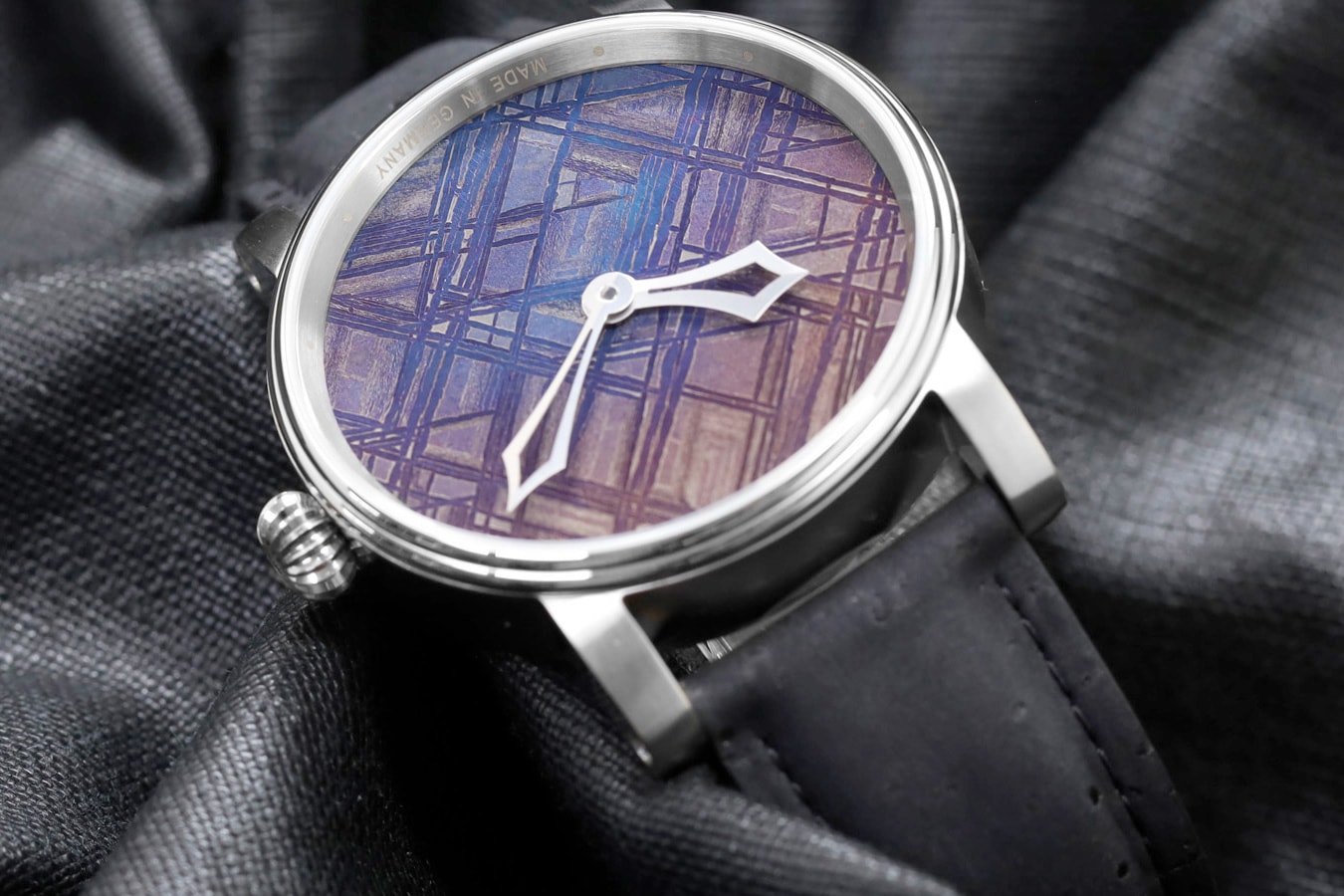 Our Natural Wonders series presents an exquisite hand-wound watch with a thermally colored dial made of genuine meteorite rock. A special heat treatment creates fascinating color nuances that make the cosmic material shine in luminous tones. Each watch is a unique work of art that combines perfect craftsmanship with the beauty of the universe.