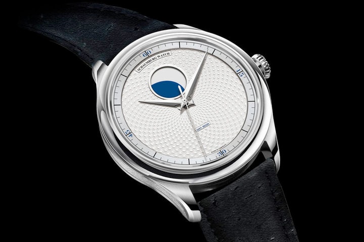 The new Little MooN collection places particular emphasis on design and includes many small, special elements. The watch case is elaborately constructed, with a domed sapphire crystal and completely diamond-polished, brushed and polished case sides. The dial of the Rocky MooN has a three-dimensional, raised design, while the dial of the Lucky MooN features an unusual guilloché pattern. The moon discs are available in different colors. In contrast to our complex astronomical perpetual moon phase watches, the Little MooN offers an uncomplicated decorative moon phase simulation. In this case, uncomplicated means that the moon phases can be easily adjusted via the crown. The moon phase design works primarily on a thirty-one-day cycle for a full revolution, which means that you can make very simple adjustments using the crown's quick correction.