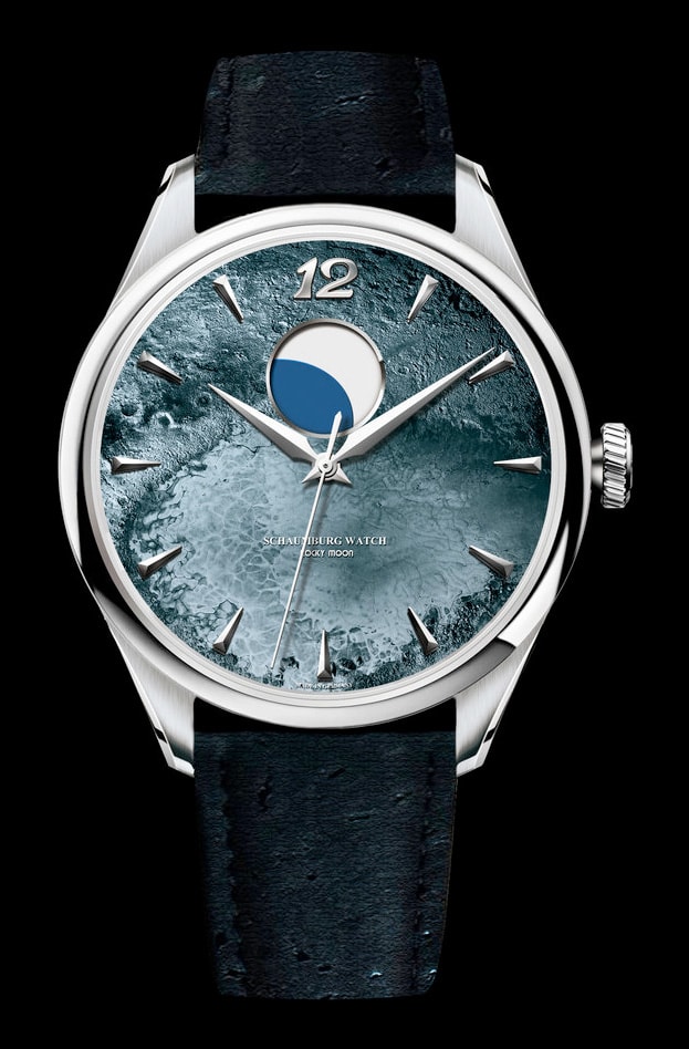 The new Little MooN collection places particular emphasis on design and includes many small, special elements. The watch case is elaborately constructed, with a domed sapphire crystal and completely diamond-polished, brushed and polished case sides. The dial of the Rocky MooN has a three-dimensional, raised design, while the dial of the Lucky MooN features an unusual guilloché pattern. The moon discs are available in different colors. In contrast to our complex astronomical perpetual moon phase watches, the Little MooN offers an uncomplicated decorative moon phase simulation. In this case, uncomplicated means that the moon phases can be easily adjusted via the crown. The moon phase design works primarily on a thirty-one-day cycle for a full revolution, which means that you can make very simple adjustments using the crown's quick correction.