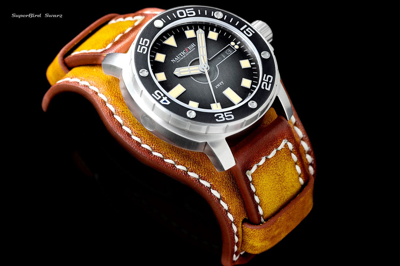 The NauticFish Zwey is a further development and thus the second series of the Thûsunt series. The special feature is the unusual design of the partially transparent dial. Like a view into the sea while diving, it offers a glimpse into the mechanical construction of the movement. The Old High German word thûsunt (thousand) stands for the outstanding reliability and water resistance of over 1000 meters of the new NauticFish generation. The goal was to realize a consensus between high reliability, modern functionality and retro-oriented design. The Thûsunt is not designed for the mainstream market, rather we see the series as a specialty among diving watches. The dial captivates with its unusual color sequence in used look, the cushion-shaped case with the dimensions 43x43mm leaves nothing to be desired in terms of wearing comfort. Excellent readability is ensured by the domed sapphire crystal with a magnification factor of approximately 1.3. Further technical highlights such as the automatic helium valve or the crown sealing system perfect the performance of the Thûsunt.