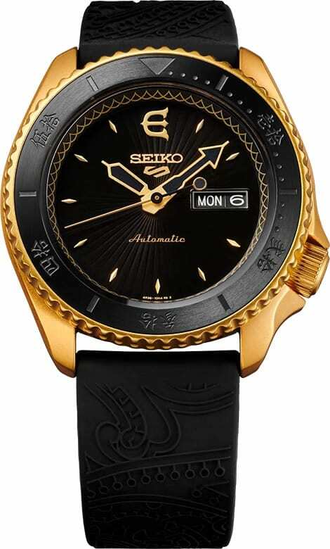 SRPF94 (Caliber 4R36) Limited Edition of 1,500 Pieces. This model incorporates the EVISEN logo Samurai helmet into its design. The silicon strap with the original paisley pattern adds a subtle accent. The display plate on the bezel is specially designed with kanji characters, incorporating Japanese taste in every detail. On the caseback is the EVISEN logo's iconic Samurai helmet and a serial number from 0001/1500 to 1500/1500.