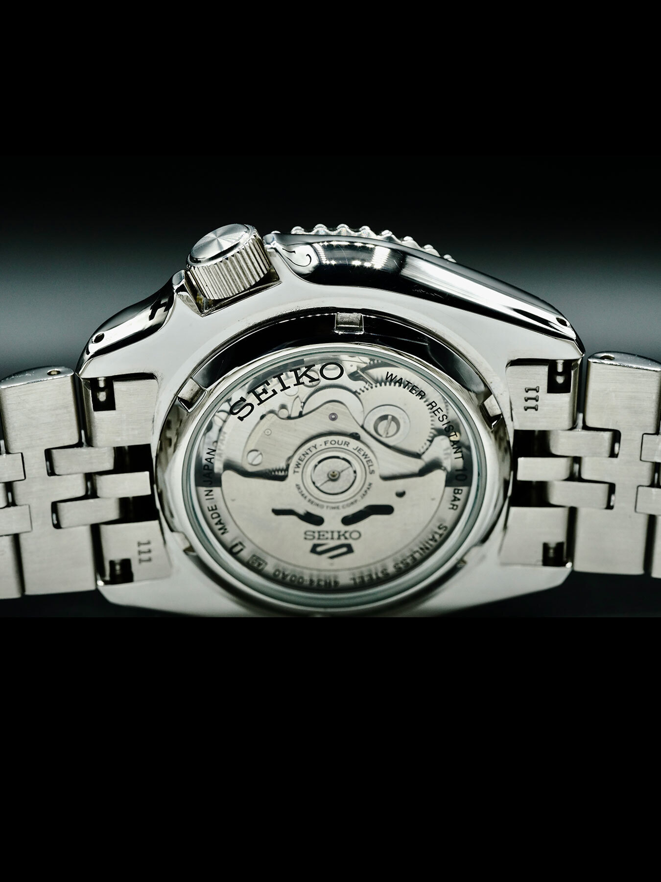 This Seiko 5 Sports SSK003 features a 42mm steel case on bracelet. This watch also sports a blue dial. Powered by a Mechanical Automatic Movement. Water resistance up to 100 meters.