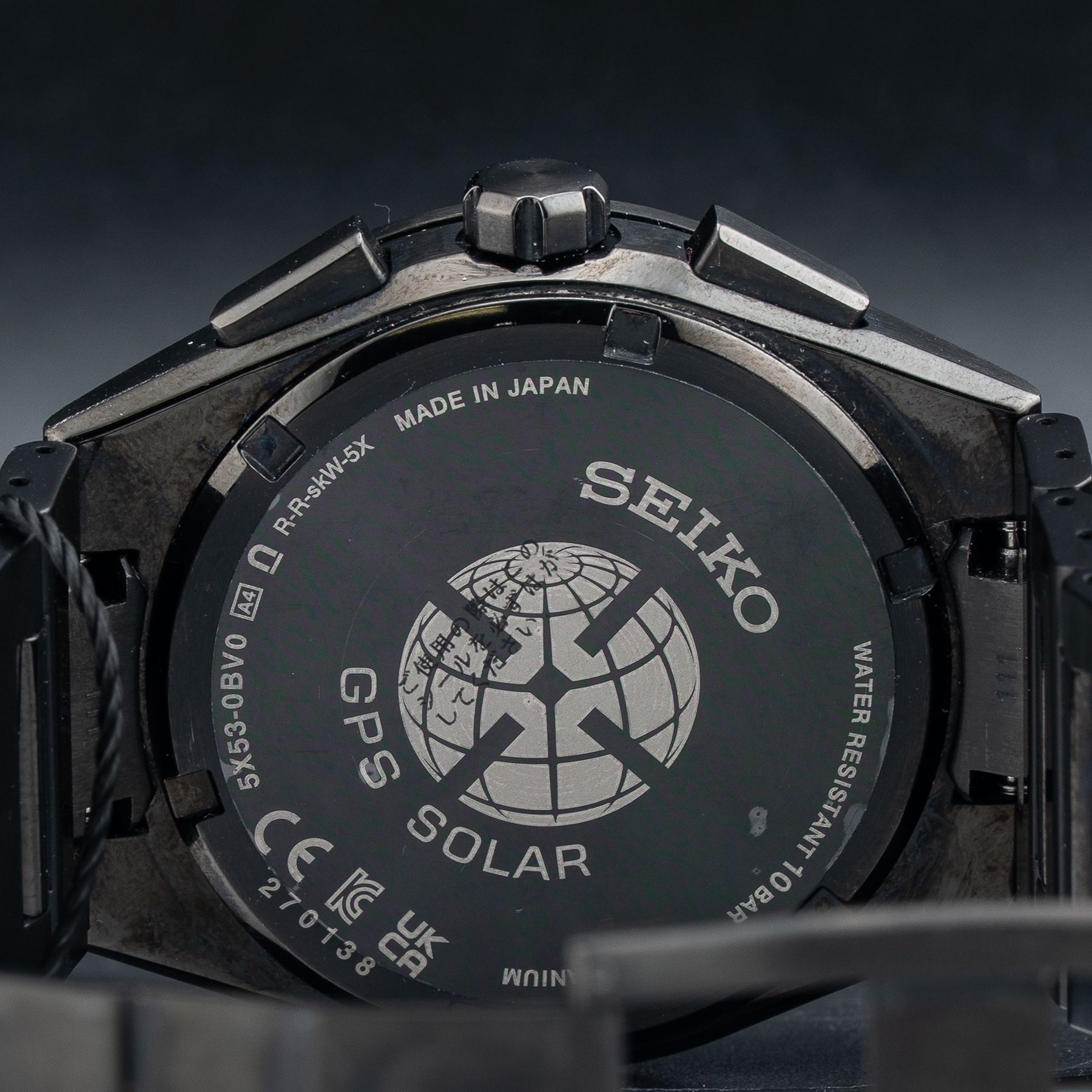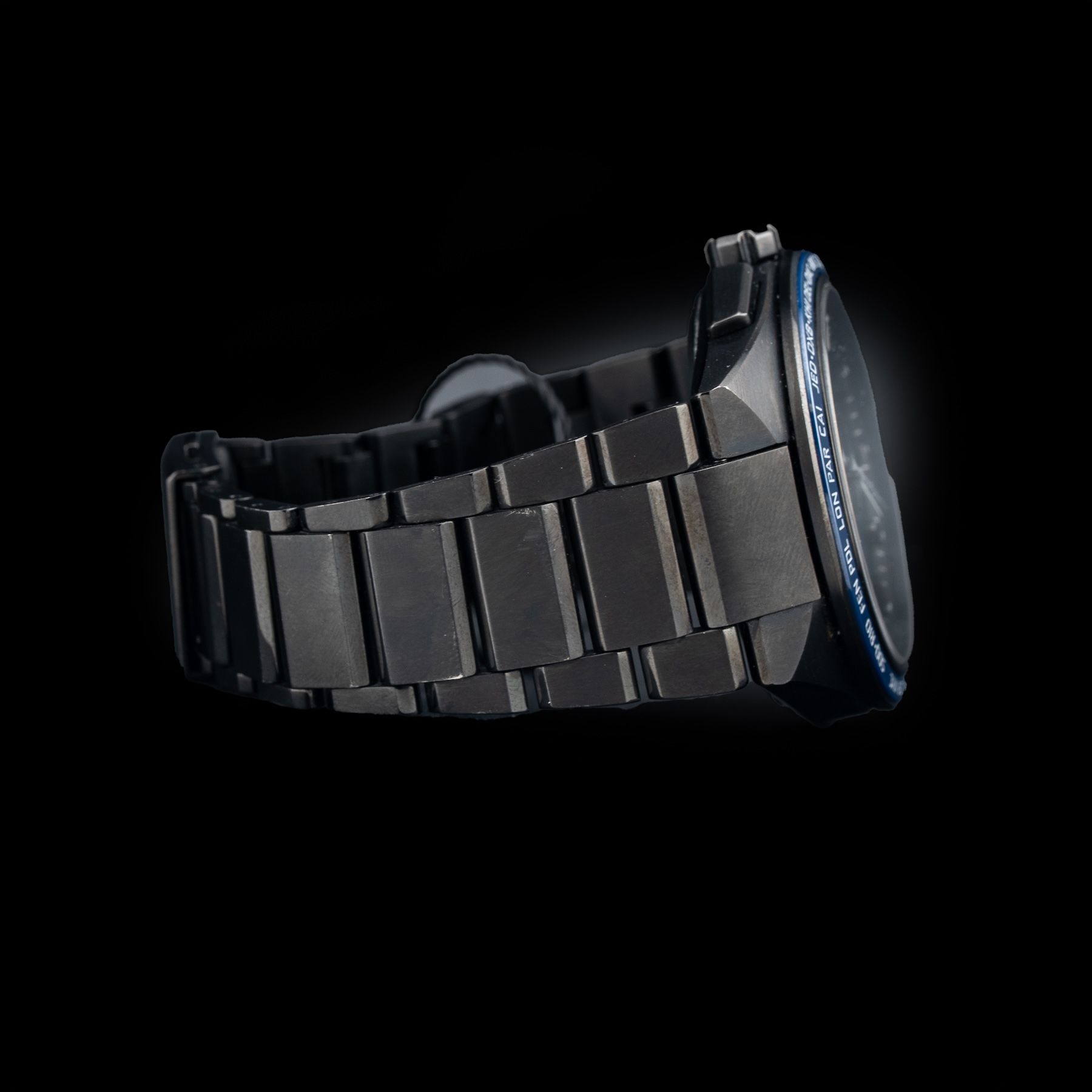 This watch features a 43.1mm titanium case on titanium bracelet. This watch also sports a sunburst blue dial. Powered by a GPS solar movement. Water resistance up to 100 meters.