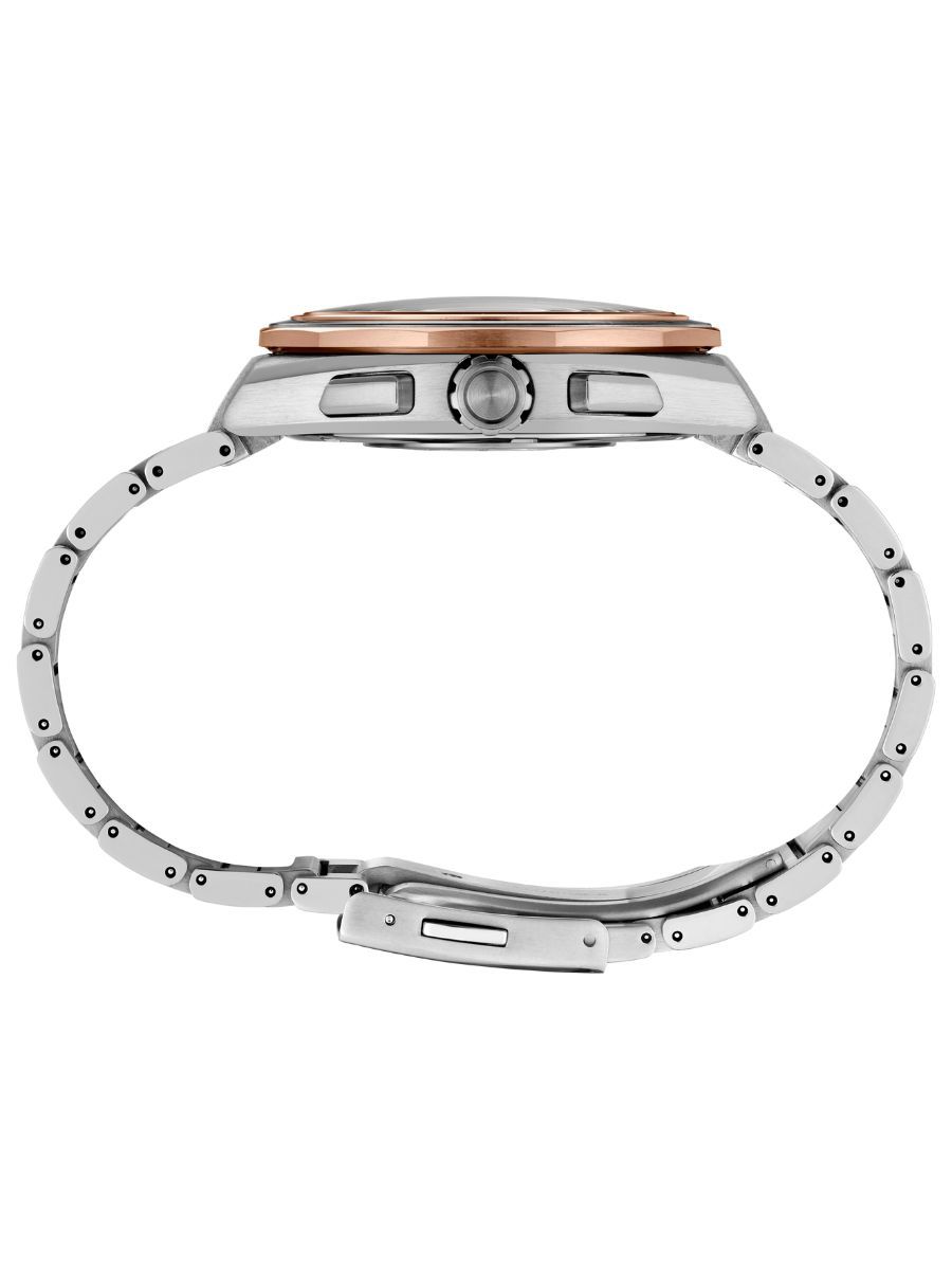 - This timepiece features a 44mm titanium case paired with a high quality titanium bracelet. It showcases a distinctive black dial and is powered by a precise quartz winding movement. The watch is designed with a water resistance of up to 100m.