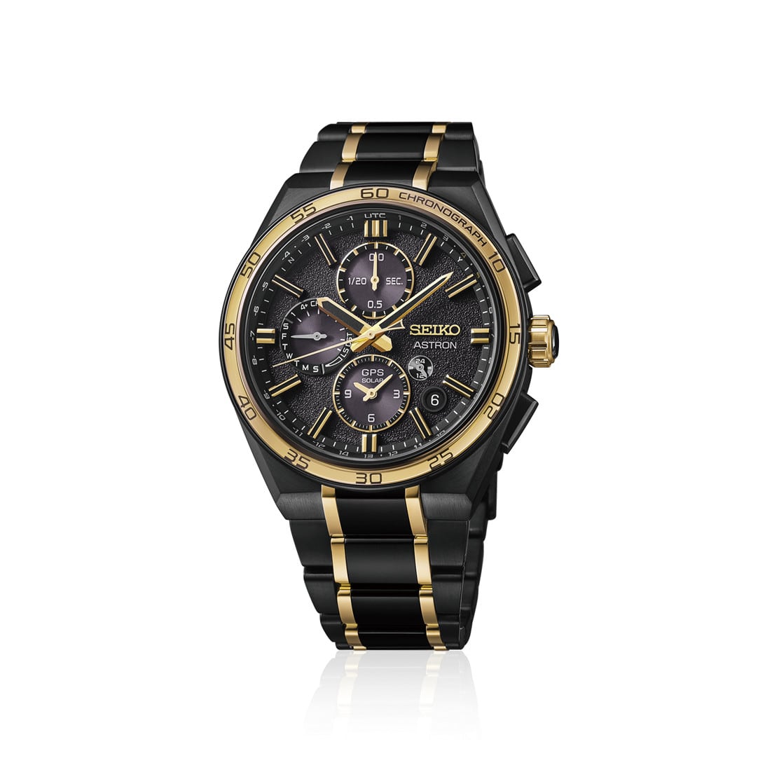 This new GPS Solar Dual-Time Chronograph celebrates Astron's spirit of innovation. Symbolizing success and prosperity, gold-colored accents grace every part of the watch, from the dial and bracelet to the case.