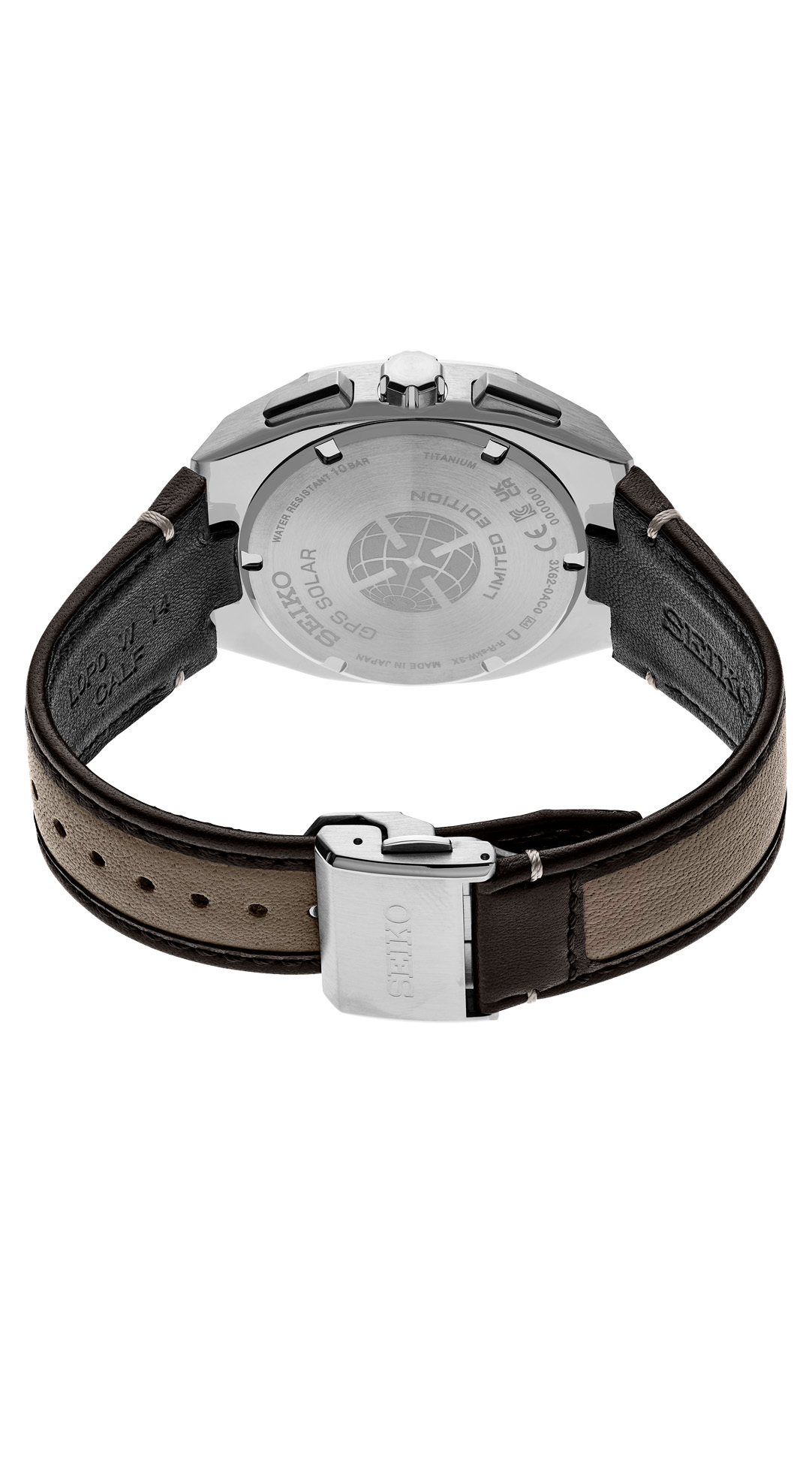 Seiko Watchmaking 110th Anniversary Limited Edition. To mark 110 years of watchmaking excellence, Seiko is highlighting its continuous dedication to evolving technology, as well as diversity, equality and the sustainable manufacturing necessary to meet environmental challenges. Strong and distinctive, with its perfectly sculpted octagonal bezel, this dynamic Limited Edition, available only in a controlled-production run of 800, combines solid tailoring with the highest degree of accuracy possible in a wristwatch. Powered by Seiko’s new GPS solar caliber 3X62, with the improved receiver sensitivity required by the metallic bezel, this exceptional watch is GPS controlled for high-speed time and time zone adjustment to 39 time zones, and includes an in-flight mode and perpetual date calendar correct to the year 2100. To ensure smooth operation, the watch is equipped with a signal reception result indicator and power save function. The solar cell is powered by light energy, with no battery change required, and offers a 6-month power reserve when fully charged. The white dial features a multi-function indicator subdial for easy mode reference, as well as blue and red accents, sharp and highly visible three-dimensional applied indices, and LumiBrite hands and markers. Crafted of light and durable titanium, with a super-hard coating for added endurance, this superb timepiece also offers a sapphire crystal with super-clear coating, secure screwdown caseback, and a dark brown sustainable leather strap, certified by the Leather Working Group (LWG), with tri-fold push button release clasp. 10 bar, 100M Water Resistant