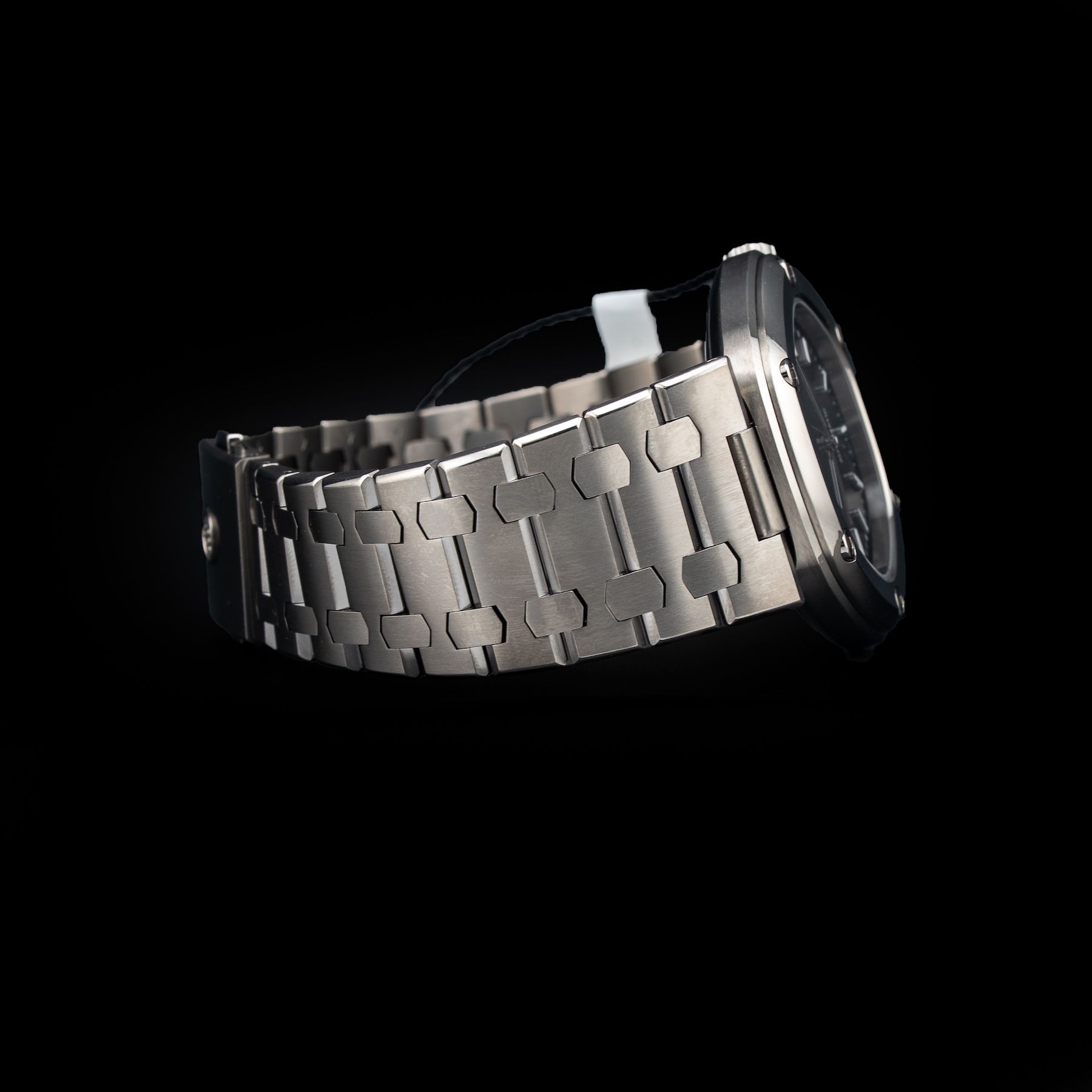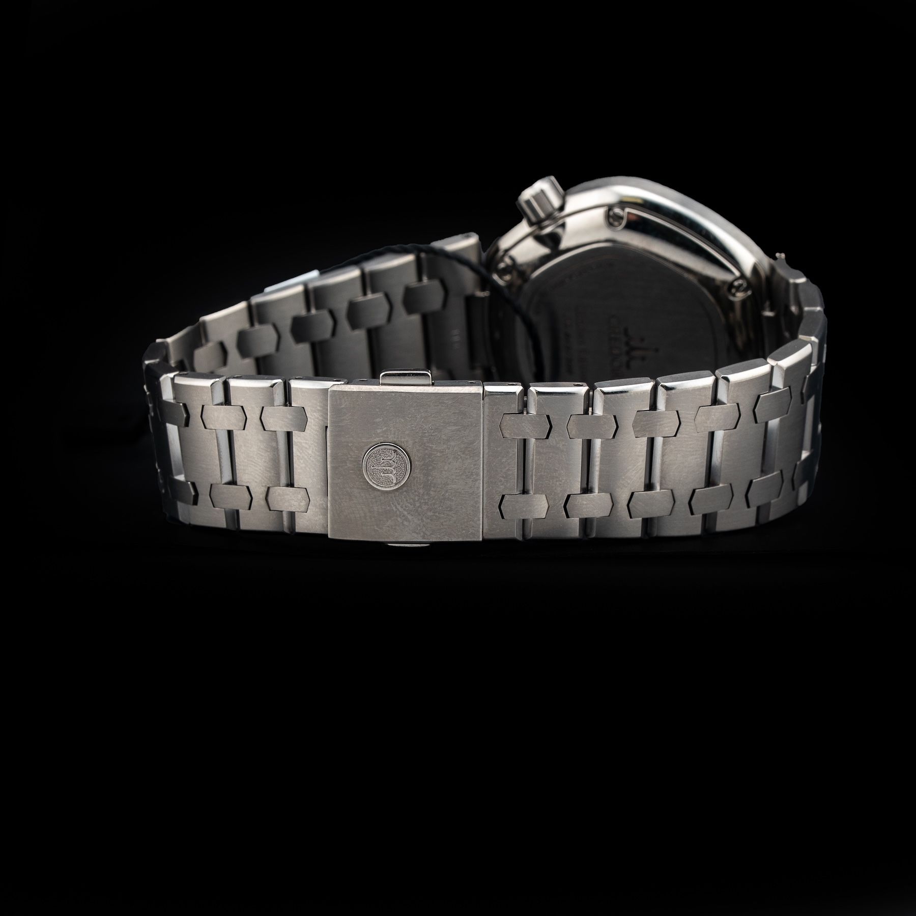 This watch features a 41.7mm titanium case on titanium bracelet. This watch also sports a black dial. Powered by a mechanical self-winding movement. Water resistance up to 100 meters.