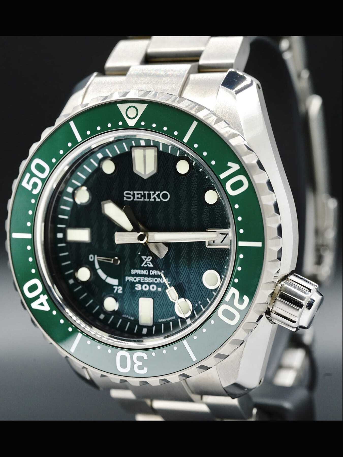 - This timepiece features a 44.8mm titanium case paired with a high quality titanium bracelet. It showcases a distinctive green dial and is powered by a precise spring winding movement. The watch is designed with a water resistance of up to 300m.