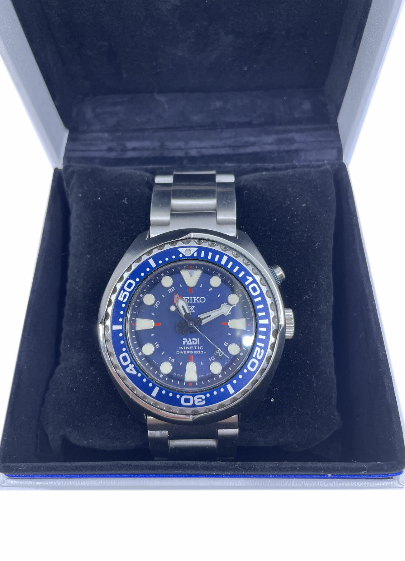 - This timepiece features a 47mm steel case paired with a high quality steel bracelet. It showcases a distinctive blue dial and is powered by a precise quartz winding movement. The watch is designed with a water resistance of up to 200m.