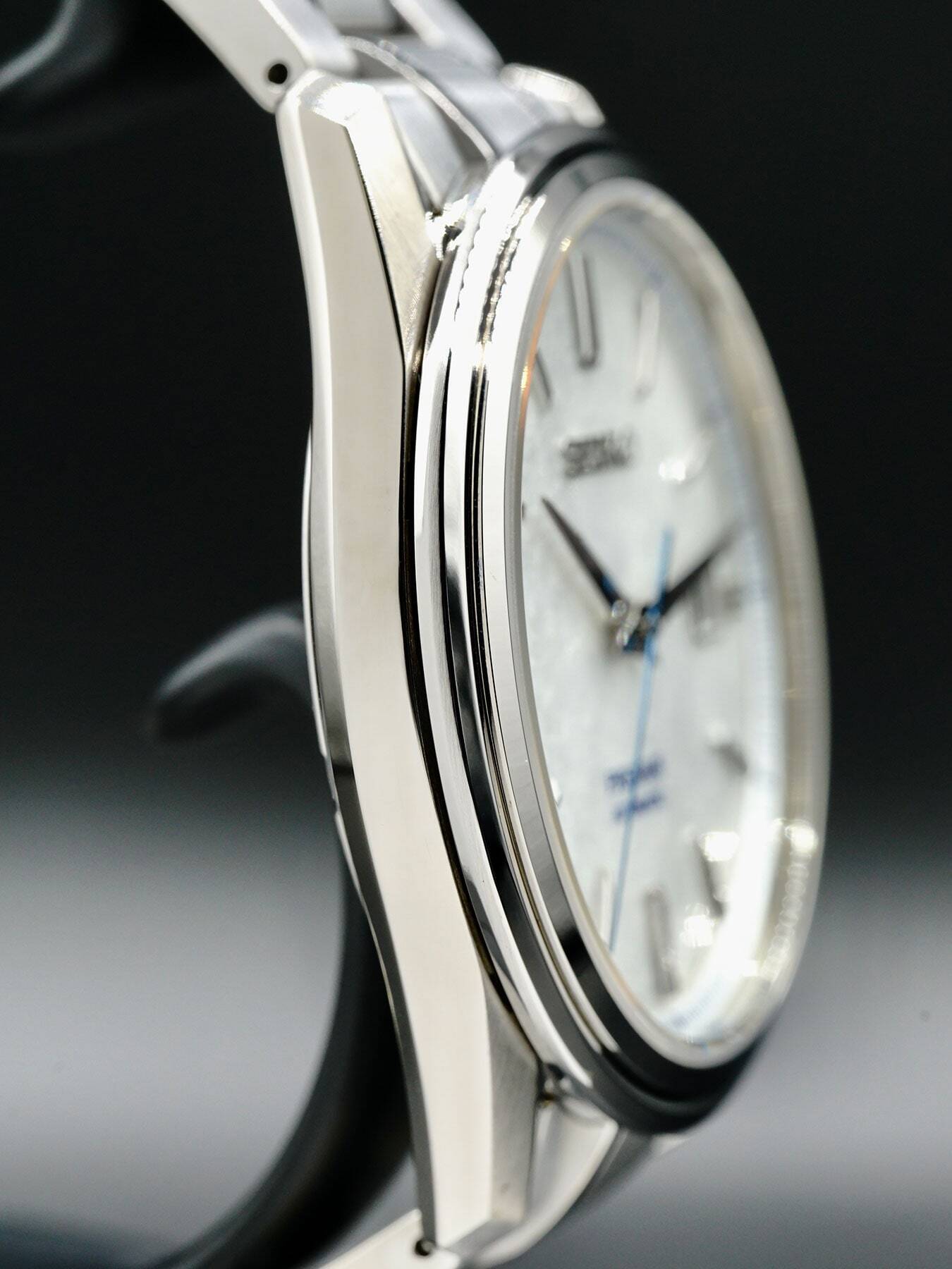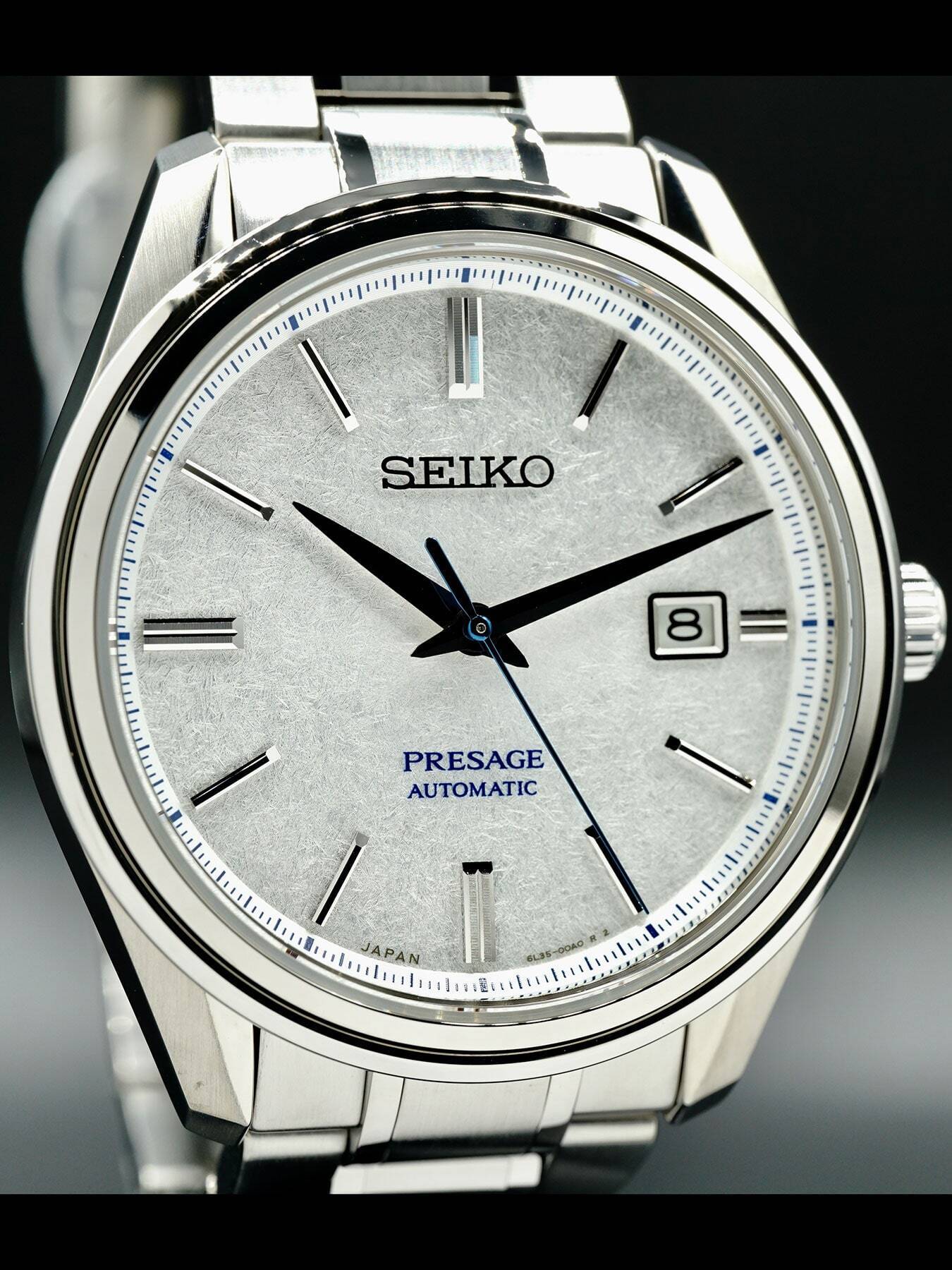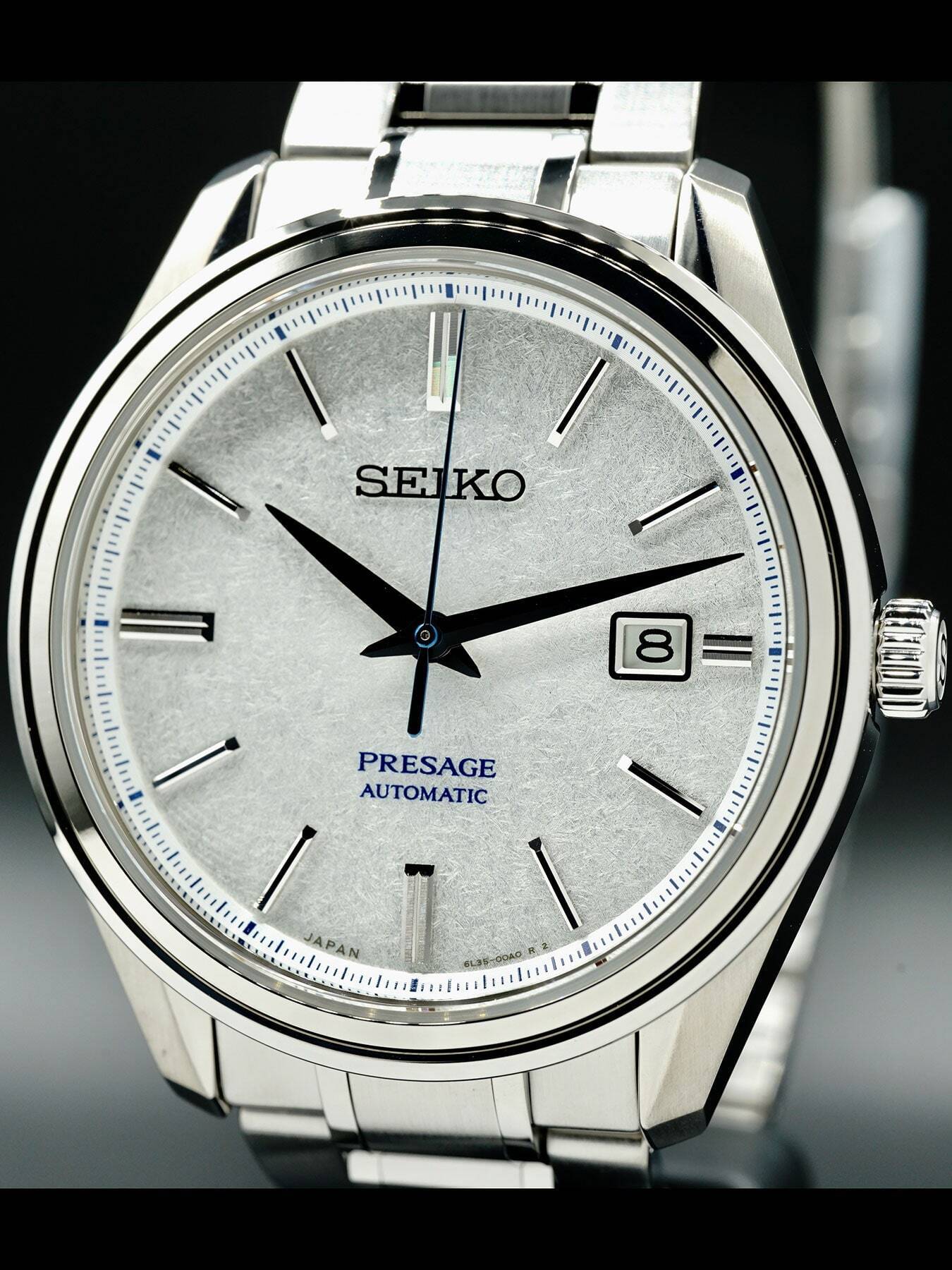 This Seiko Presage SJE073 Limited Edition "Baby Snowflake" is in EXCELLENT condition. This watch includes its original box and original papers. Limited Edition of 1,881 pieces.