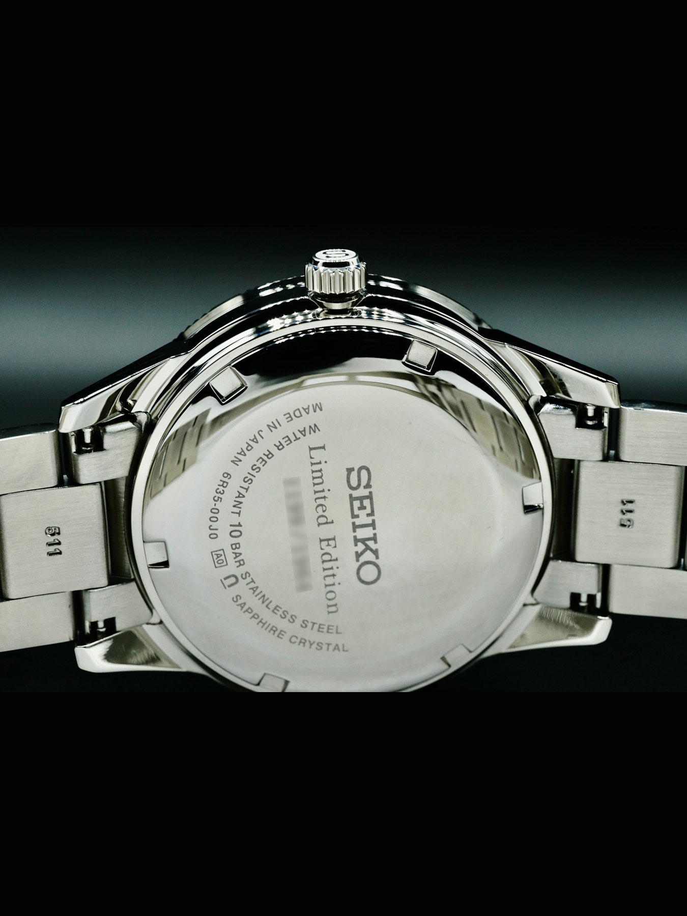 Automatic movement powered by Seiko Caliber 6R35 with a power reserve of approximately 70 hours. Water resistance up to 100 meters.