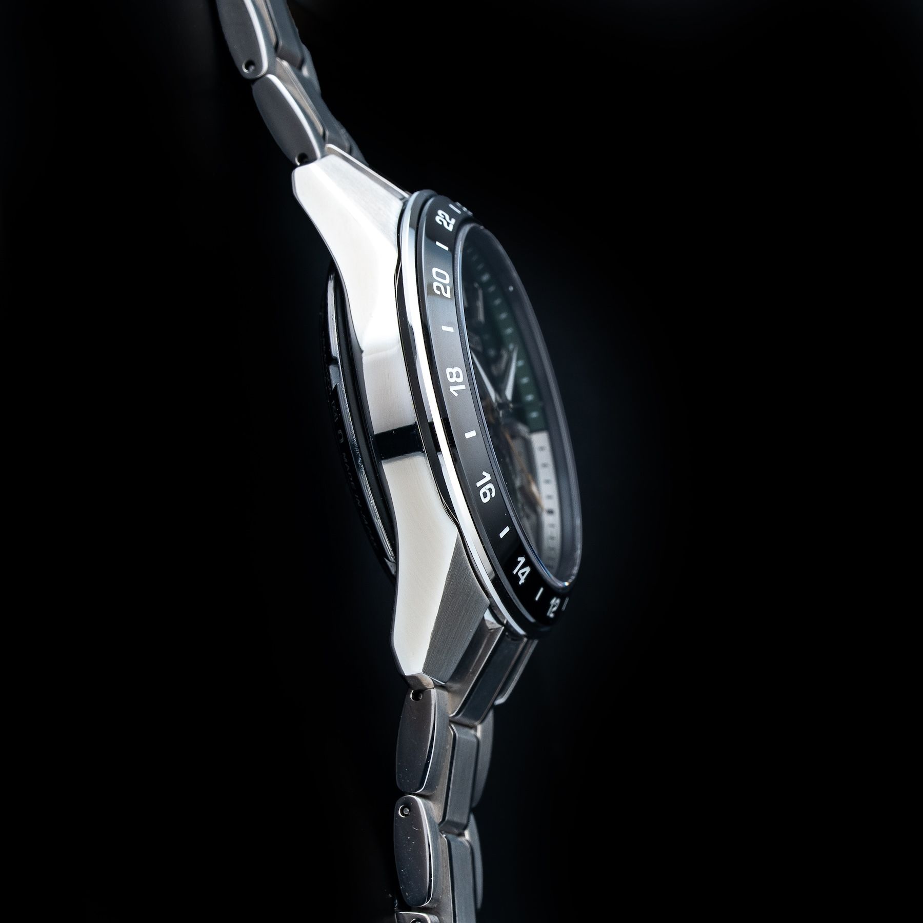 This watch features a 42mm stainless steel case on stainless steel bracelet. This watch also sports a green dial. Powered by a mechanical automatic movement. Water resistance up to 100 meters.