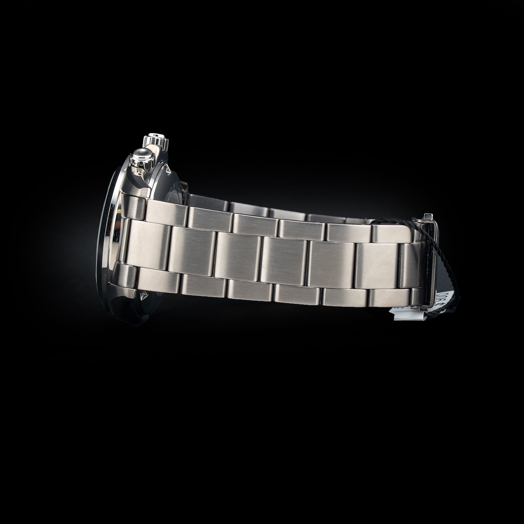 This watch features a 39.5mm stainless steel case on stainless steel bracelet. This watch also sports a turquoise dial. Powered by an automatic with manual winding movement. Water resistance up to 200 meters.