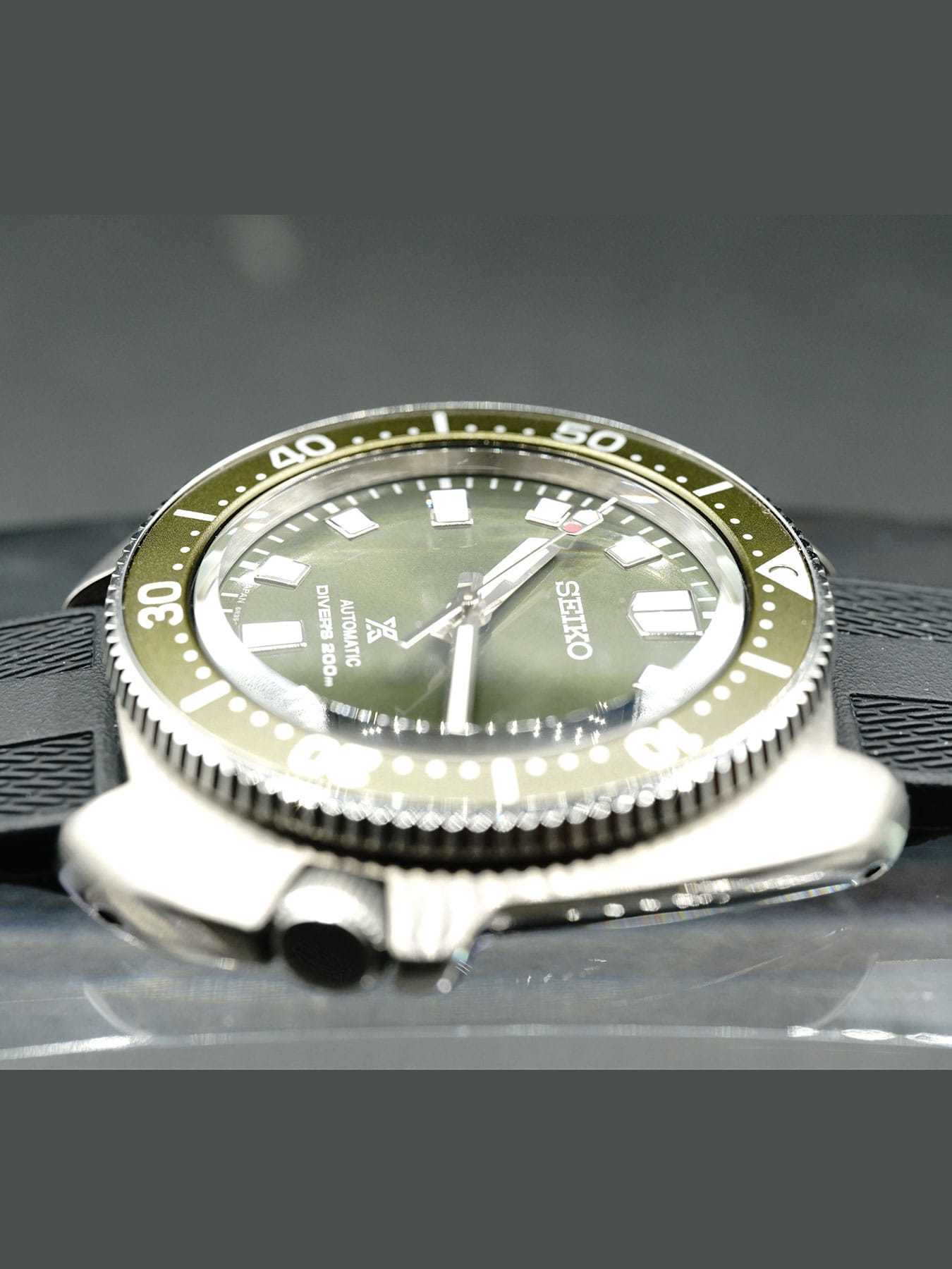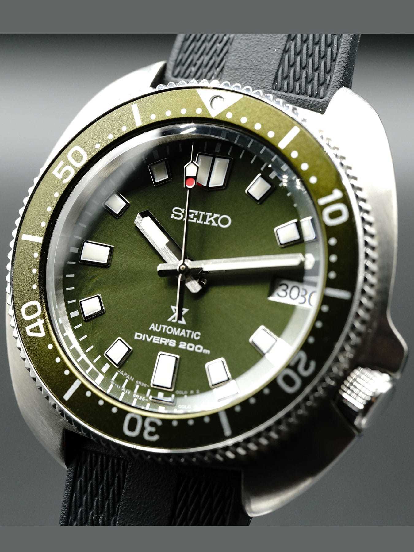 - This timepiece features a 42mm steel case paired with a high quality rubber strap. It showcases a distinctive green dial and is powered by a precise automatic winding movement. The watch is designed with a water resistance of up to 200m.