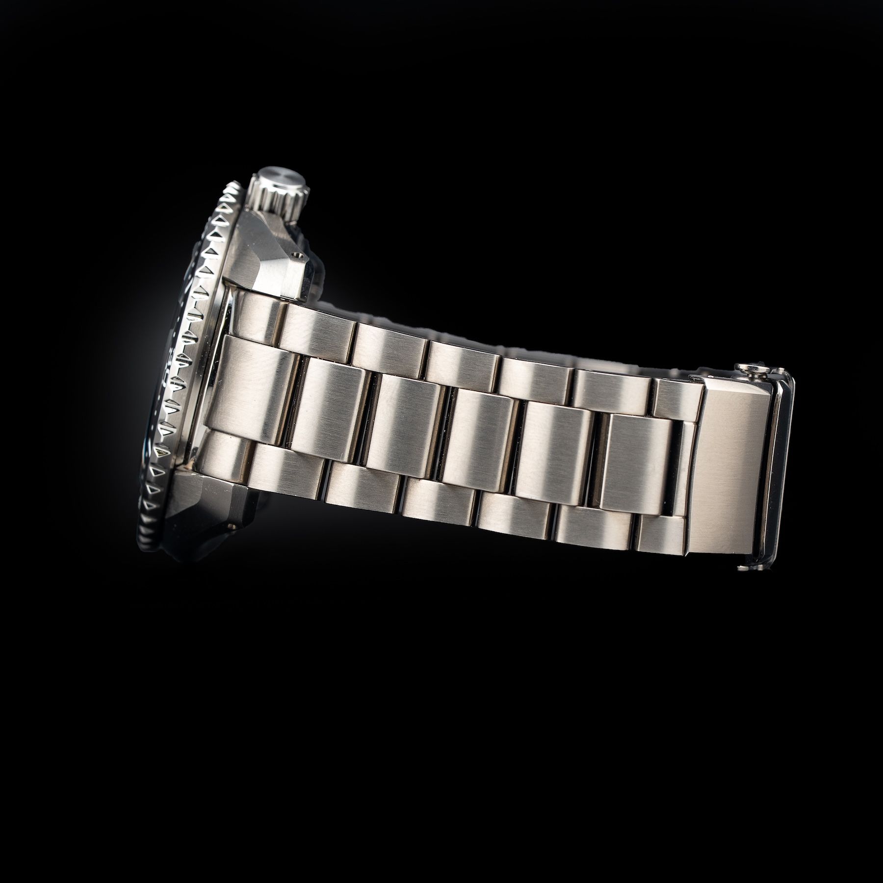 This watch features a 42mm stainless steel case on stainless steel strap. This watch also sports a white dial. Powered by a mechanical automatic movement. Water resistance up to 200 meters.