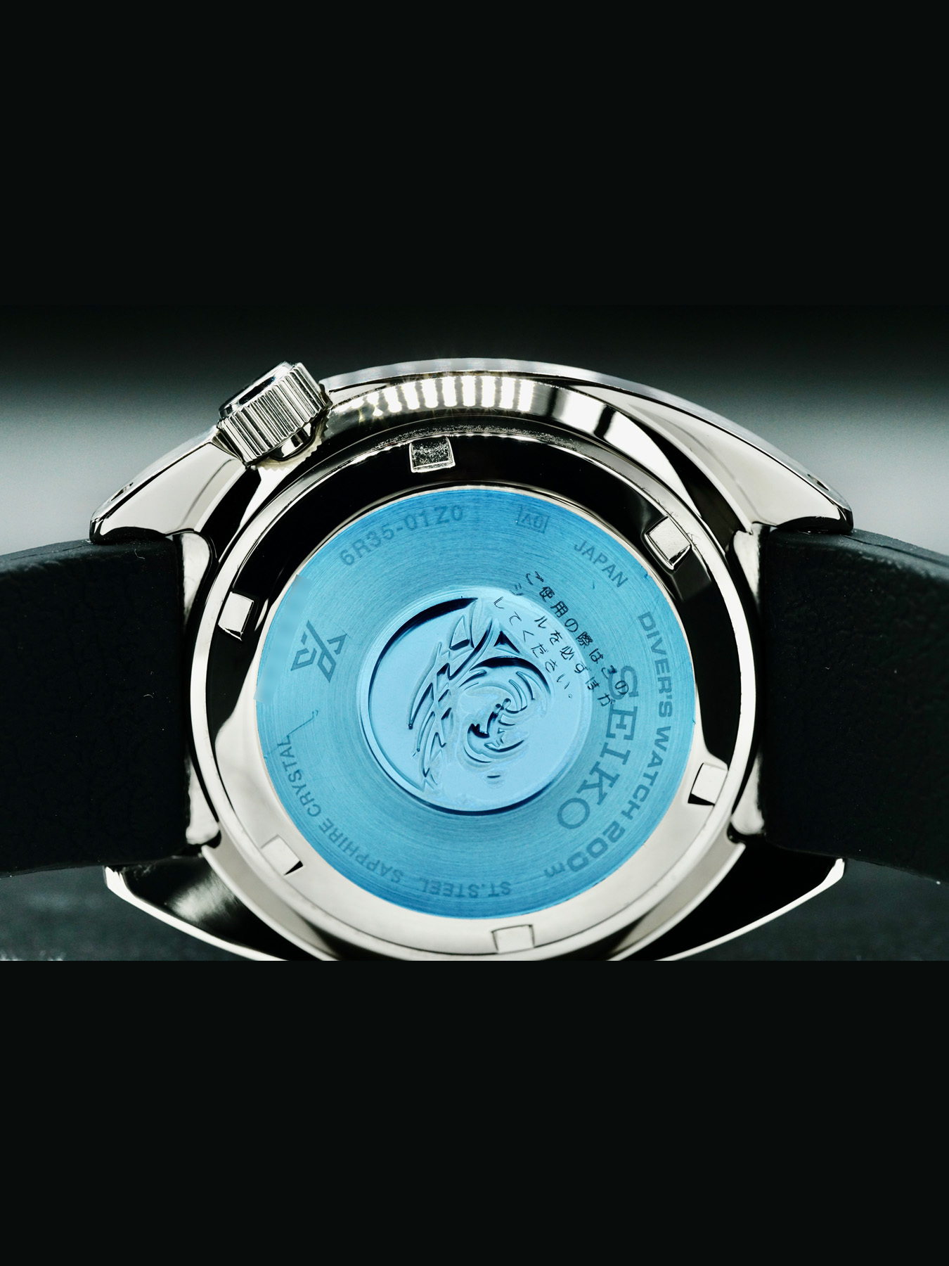 Automatic movement powered by Seiko Caliber 6R35 with a power reserve of approximately 70 hours. Water resistance up to 200 meters.