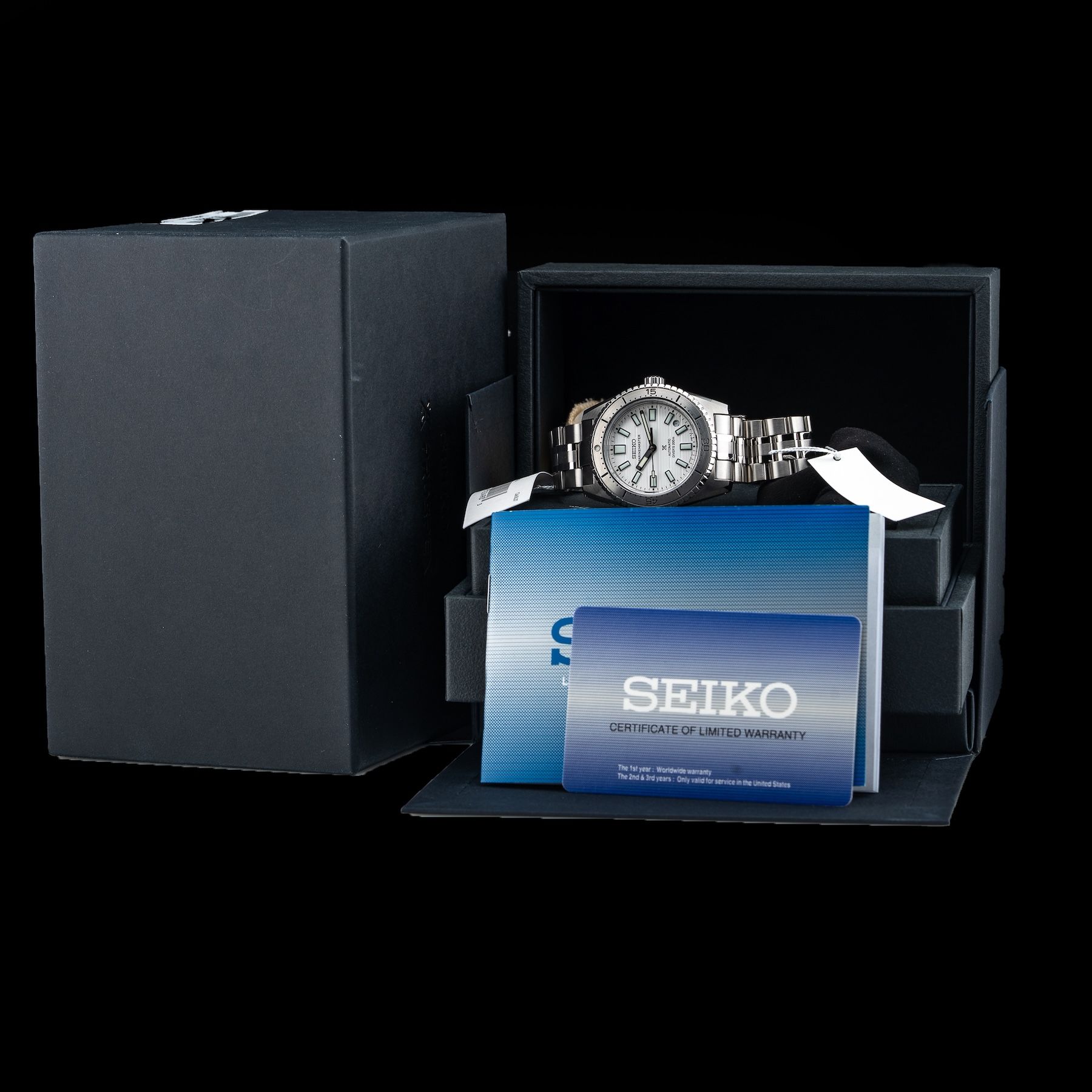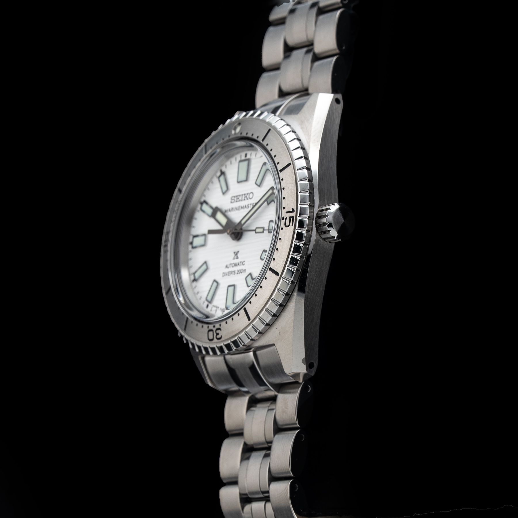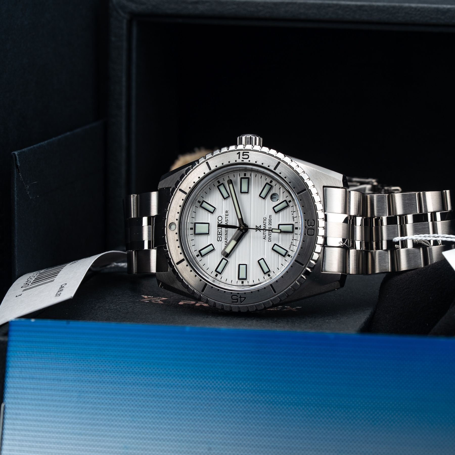 This Seiko Prospex SJE097 Marinemaster 1965 Diver's Modern Re-Interpretation Limited Edition is in GREAT condition. This watch includes its Original Box, Original Papers and warranty card dated 02/23/26. This watch has been fully authenticated and certified by Exquisite Timepieces. Please note, the photos shown are of the actual watch you will receive.